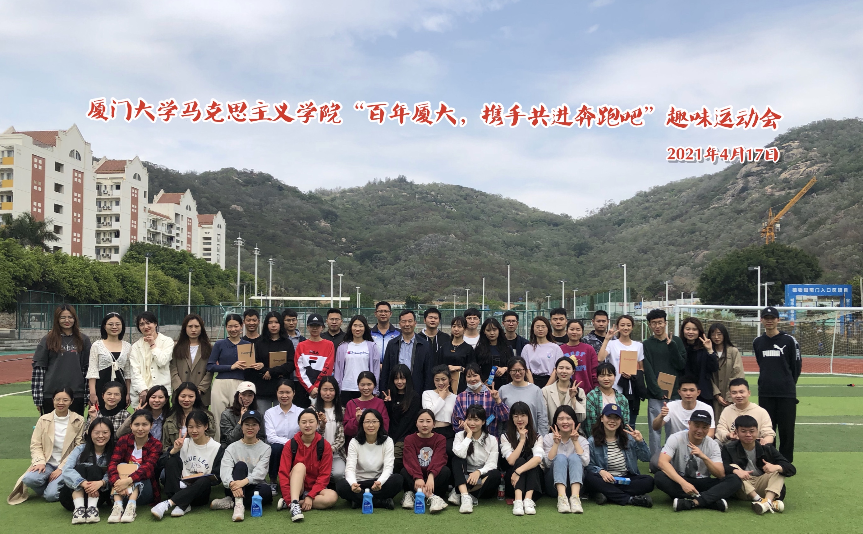春日融融,和风阵阵。为迎接建党百年,献礼厦门大学建校百年,展示当代研究生的青春风采,4月17日上午,马院在海韵学生公寓操场举办了以“百年厦大,携手共进奔跑吧”为主题的趣味运动会。此次运动会吸引学院众多硕博生参与,蔡虎堂老师到场指导,为选手加油助威。