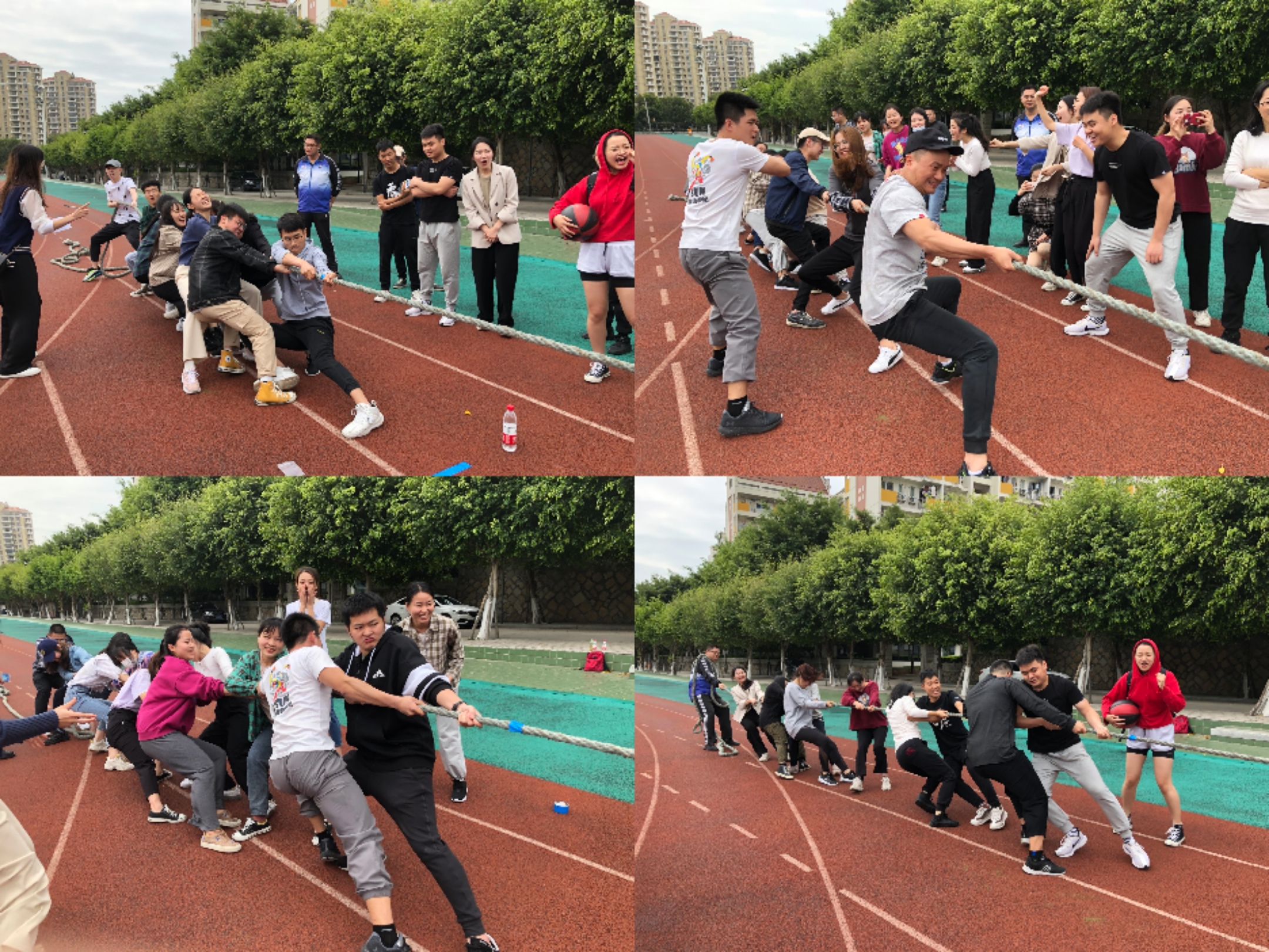 四月的厦门青苗初起,嫩红初绽。运动会在开场音乐和大家的期待声中拉开帷幕。各支队伍斗志昂扬、团结协作,整场活动氛围紧张而活泼。首先进行的是绑腿跑,这项比赛考验着选手之间的默契。各队选手依次双腿互绑,一字排开,整装待发。裁判员一声令下,选手们稳中求进,喊着“一二一,一二一”的口号迈向终点。背靠背夹球考验的不只是力度,还有队员之间的默契。你靠着我,我依着你,看谁能最快到达终点。看着同学们洋溢的笑容,平日工作学习的忙碌都被抛到脑后。与其说这是一场比赛,不如说是一次娱乐放松。