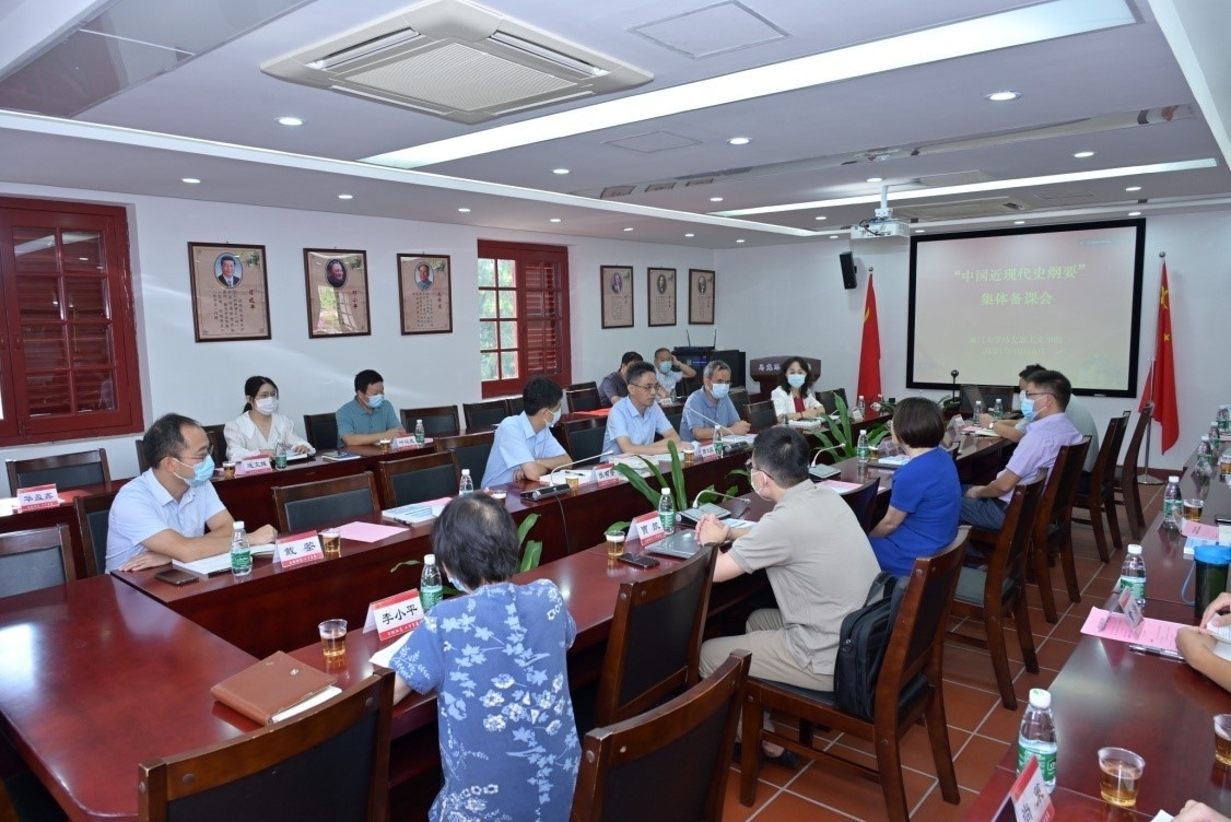 中国近现代史教研部主任周雪香教授主持备课会。马克思主义学院侯利标书记、张有奎常务副院长、原宗丽副院长、“纲要”课程组全体教师、本学期“纲要”课程合聘教师、“1十N”建设马克思主义学院引航计划(厦门大学组团)项目成员教师参加。