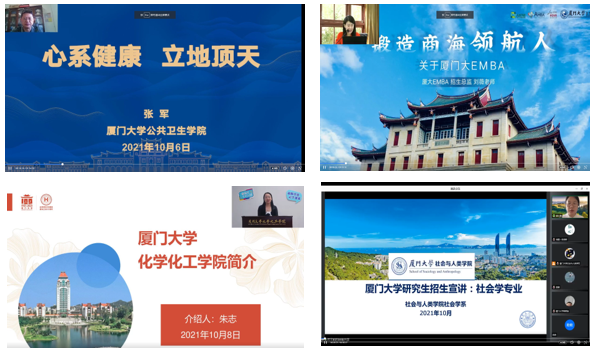 启动线上直播宣讲会,强化第一志愿报考意愿。在学校领导高度重视、各学院(研究院)的大力支持下,9月27日至10月15日,共14个学院(研究院)、近40位老师参与了15场“南强研路起航”系列直播,平均每场直播观看量达4000人次。各位教授、老师通过线上直播平台直观、全面地向考生介绍了厦门大学历史文化、各专业的人才培养特色和科研实力等内容,并在每场直播结束后耐心回答考生们提出的问题,直播间气氛十分热烈。