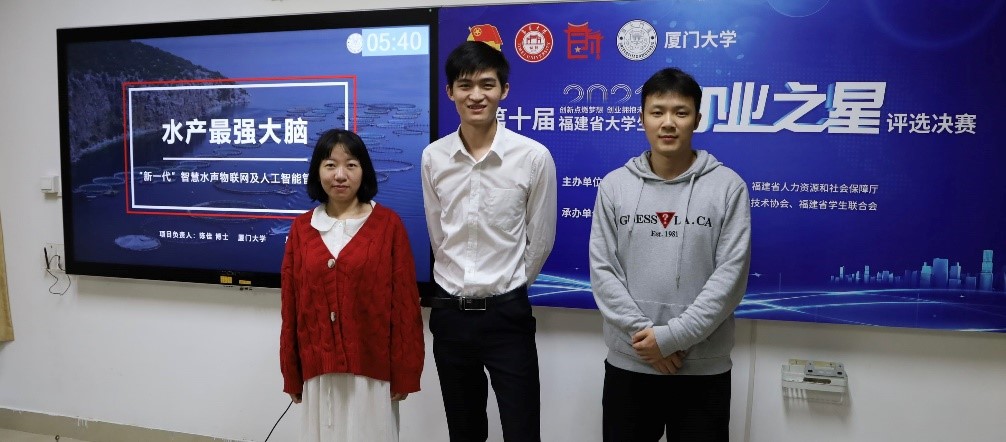 “‘新一代’智慧水声物联网与人工智能管理系统”项目由林佼教授等担任指导老师,由陈佳博士带领厦门汇听科技公司创业团队,联合信息、海洋等多个学院的本硕博学生协同完成。该项目当前业务主要集中在水产养殖领域,率先引入水声信号处理技术,整合水声、水质、图像信息,做到了养殖户听觉、视觉和嗅觉三“维”全方面立体化感知,实现水产养殖全天实时监控和反馈的重大突破,带动水产养殖业技术全面升级。项目团队目前已走访云南、安徽等8省农村地区,落地协议100多项,预计合作年产量10万余吨。此外,该项目曾荣获中国国际“互联网+”创新创业大赛银奖等国家、省部级比赛奖项十余项,并入选国务院双创活动周示范项目等。项目成效得到了社会各界的广泛关注,包括厦门卫视、东南网等多家主流媒体的宣传报道。