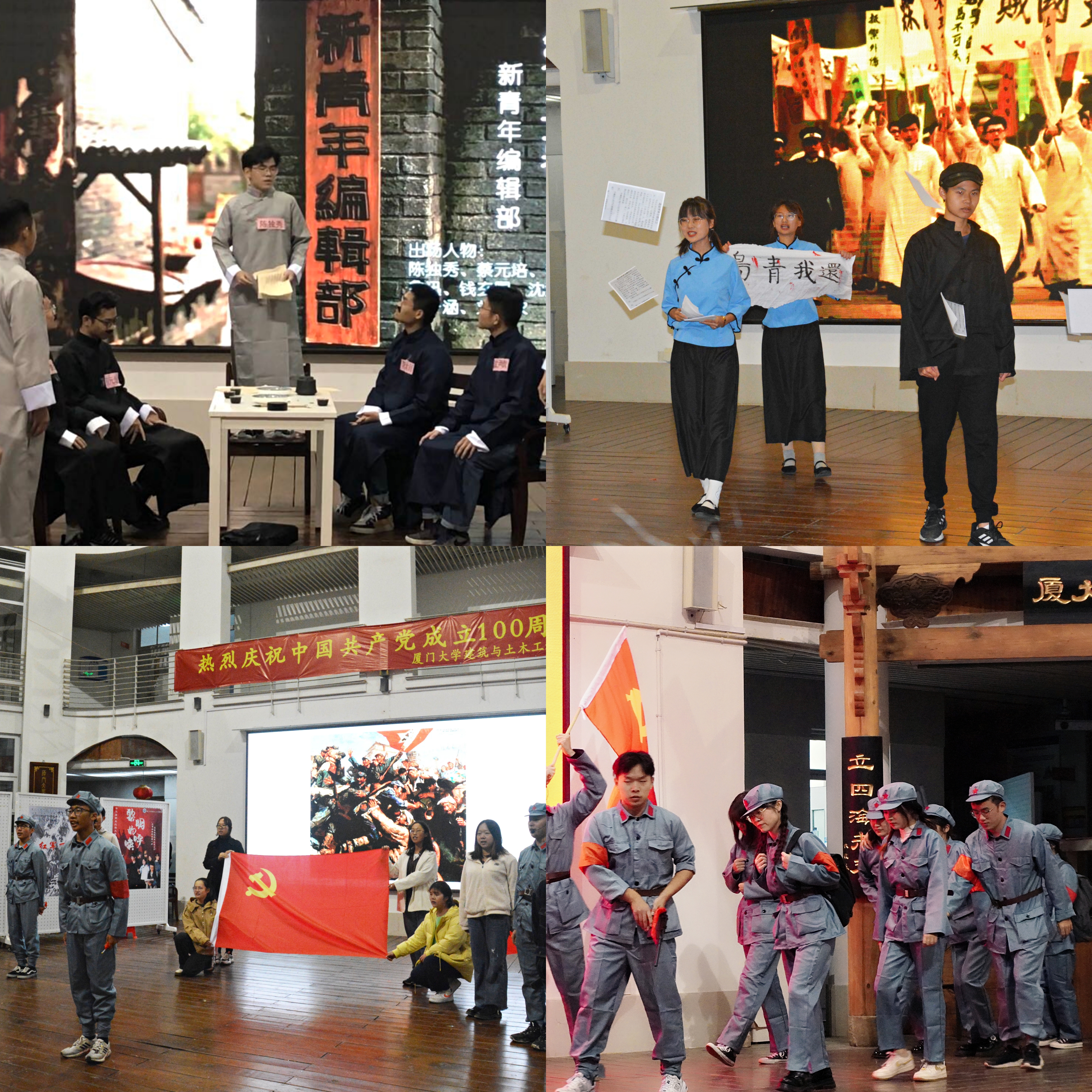 12月4日晚上,建筑与土木工程学院“不忘初心、牢记使命”第五届新生红剧大赛在曾呈奎楼举行。此次红剧为学院深入学习贯彻党的十九届六中全会精神系列活动,结合党史学习教育开展,以话剧表演为载体,重现党的奋斗历史、讴歌党的百年奋斗重大成就,激发学生爱党爱国情怀、增强青年的历史责任感。本次大赛共有19支参赛队伍,从启动到决赛历时1个半月,最终8支队伍进入决赛。红剧分组、选角、确定剧本、排练与道具准备均由同学们自主完成。近300人全程参与此次活动,网络参与人数近4万人。