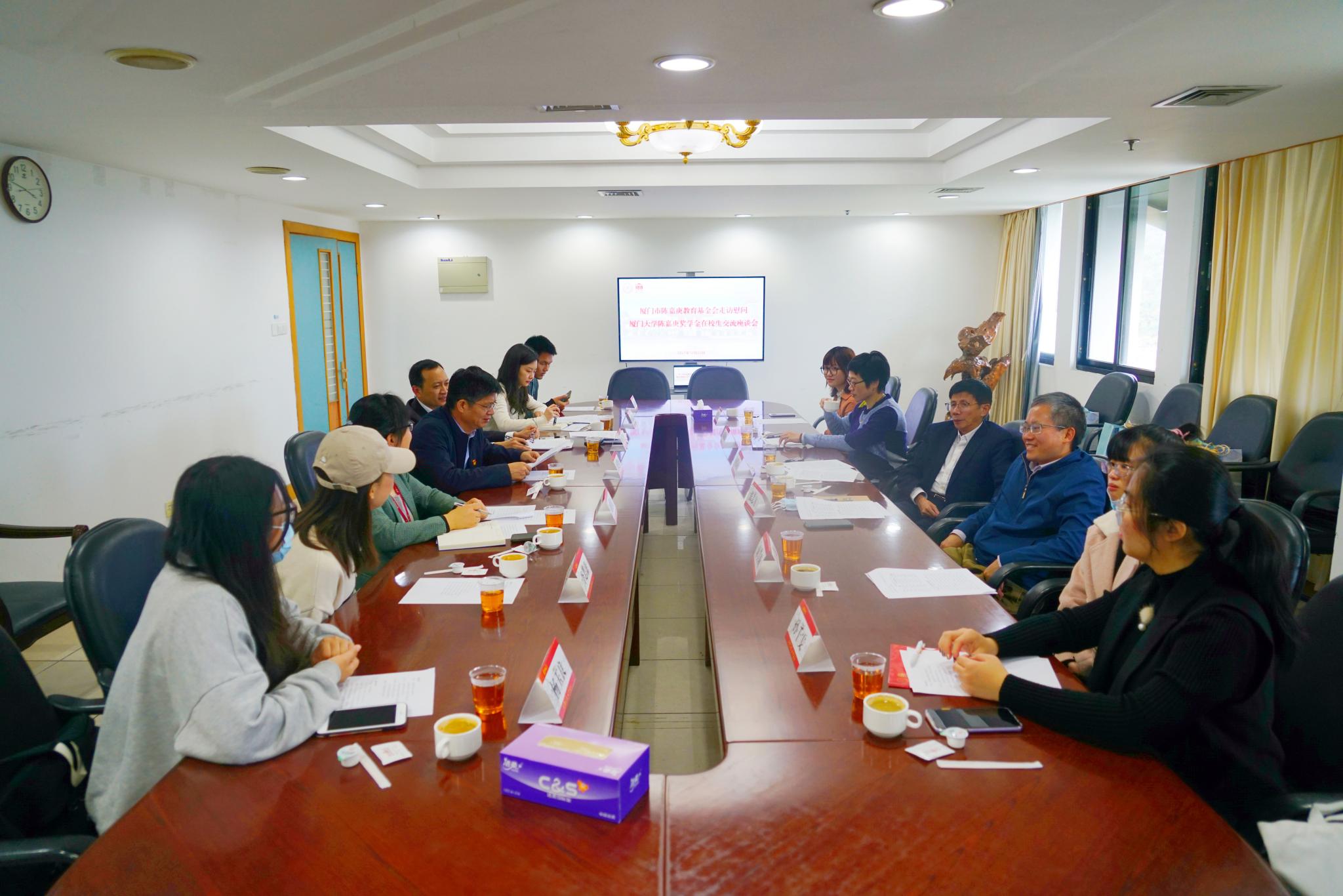 12月23日下午,厦门市陈嘉庚基金会一行来校看望慰问陈嘉庚奖学金在校生,与学生交流座谈。陈嘉庚教育基金会理事长、陈嘉庚奖学金工作领导小组副组长何福龙,集美学校委员会副主任、基金会副理事长兼秘书长张志方,集美学校委员会人事处处长、基金会副秘书长陈励雄等来宾,我校党委副书记徐进功、学生处处长李峰、副处长刘俊英以及在校陈嘉庚奖学金学生代表参加活动。
