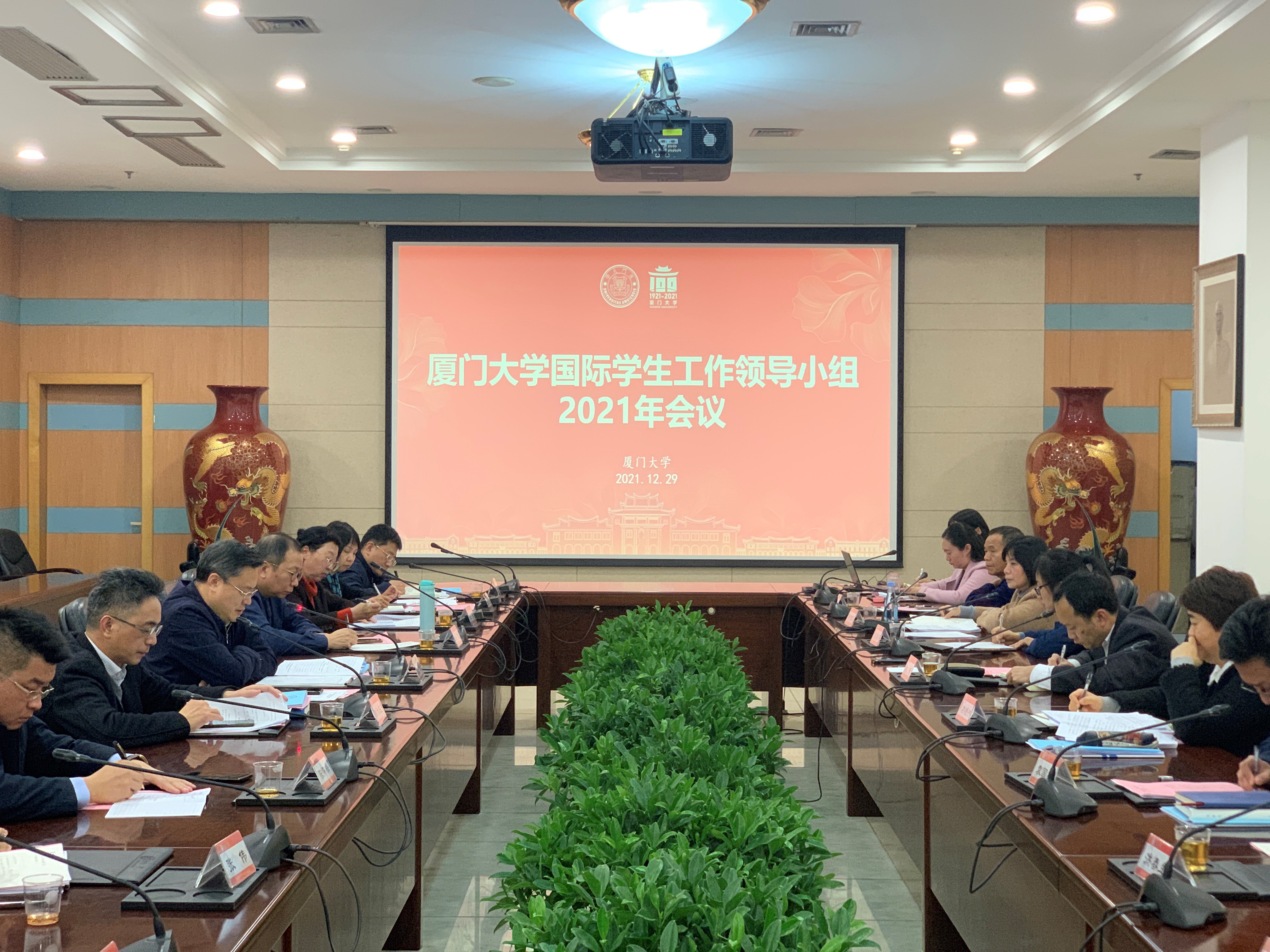 2021年12月29日下午,厦门大学国际学生工作领导小组2021年会议在颂恩楼215会议室召开。会议回顾总结了近年来学校国际学生工作情况,并研究部署下一阶段工作。校长张荣、校长助理陈光出席会议。副校长周大旺主持会议。