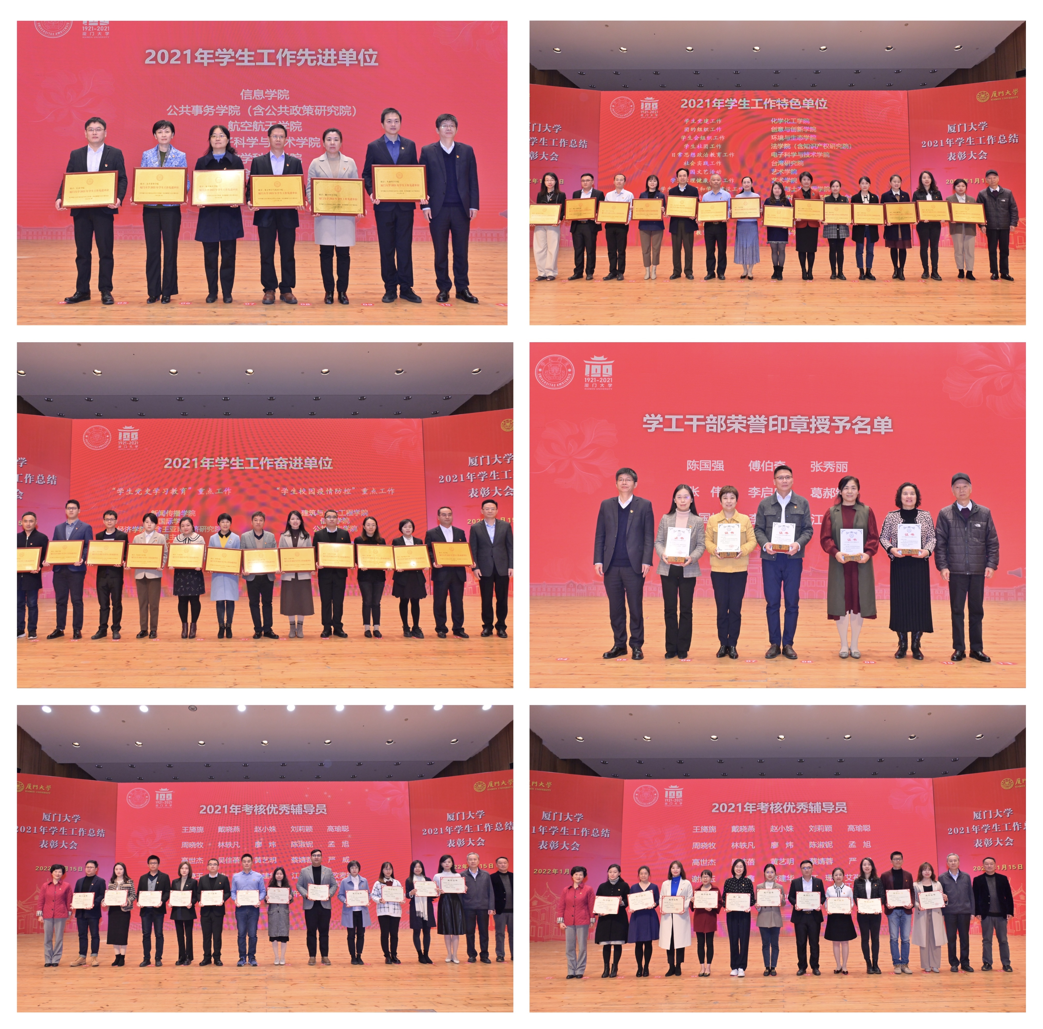 1月15日,厦门大学召开2021年学生工作总结表彰大会。校党委副书记徐进功,校关工委顾问黄如彬,校党委常委、组织部部长、统战部部长孙理出席会议。