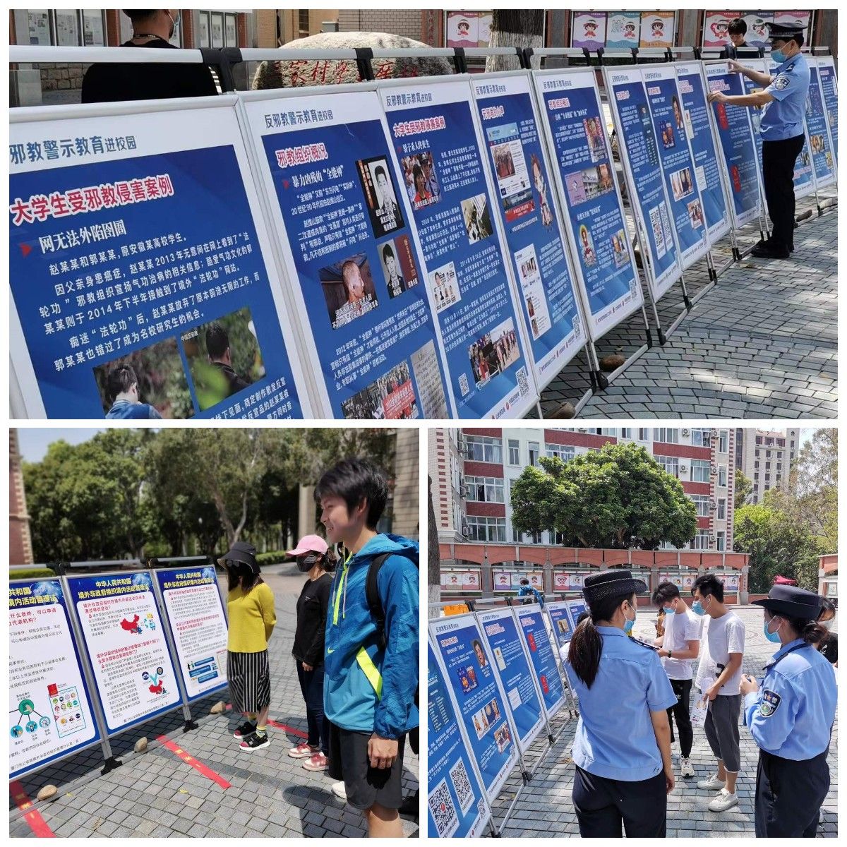 此外,学校联合大学路派出所在三家村摆放反邪教、中华人民共和国境外非政府组织境内活动管理法宣传展板。通过横幅、海报及LED显示屏等宣传载体全面普及科学文化知识和法律知识。