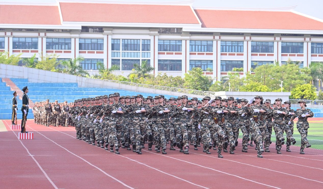 校军训工作领导小组成员,机关部处负责人,学院党政领导,承训部队官兵以及全体军训带队老师等参加典礼。