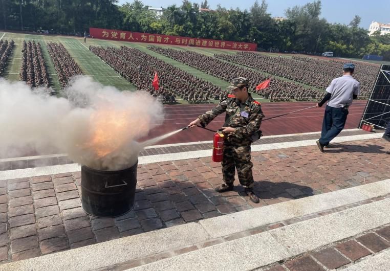 9月13日上午,厦门市思明区厦港消防救援站副站长张斌利用军训动员大会契机,在上弦场为全体本科新生开展消防安全培训。张斌从校园消防安全隐患出发,结合丰富的消防实践经验和理论知识,讲解了校园火灾的起因与危害、预防措施、险情处置与逃生救助方法等方面的知识,让同学们充分认识到火灾的危害和提升防范能力的重要性。随后,张斌和保卫部(处)工作人员带领同学们进行了实战灭火演练,让新生们熟悉并掌握使用灭火器的详细步骤及相关注意事项,进一步提升同学们在遇到火情时的应急处置能力。