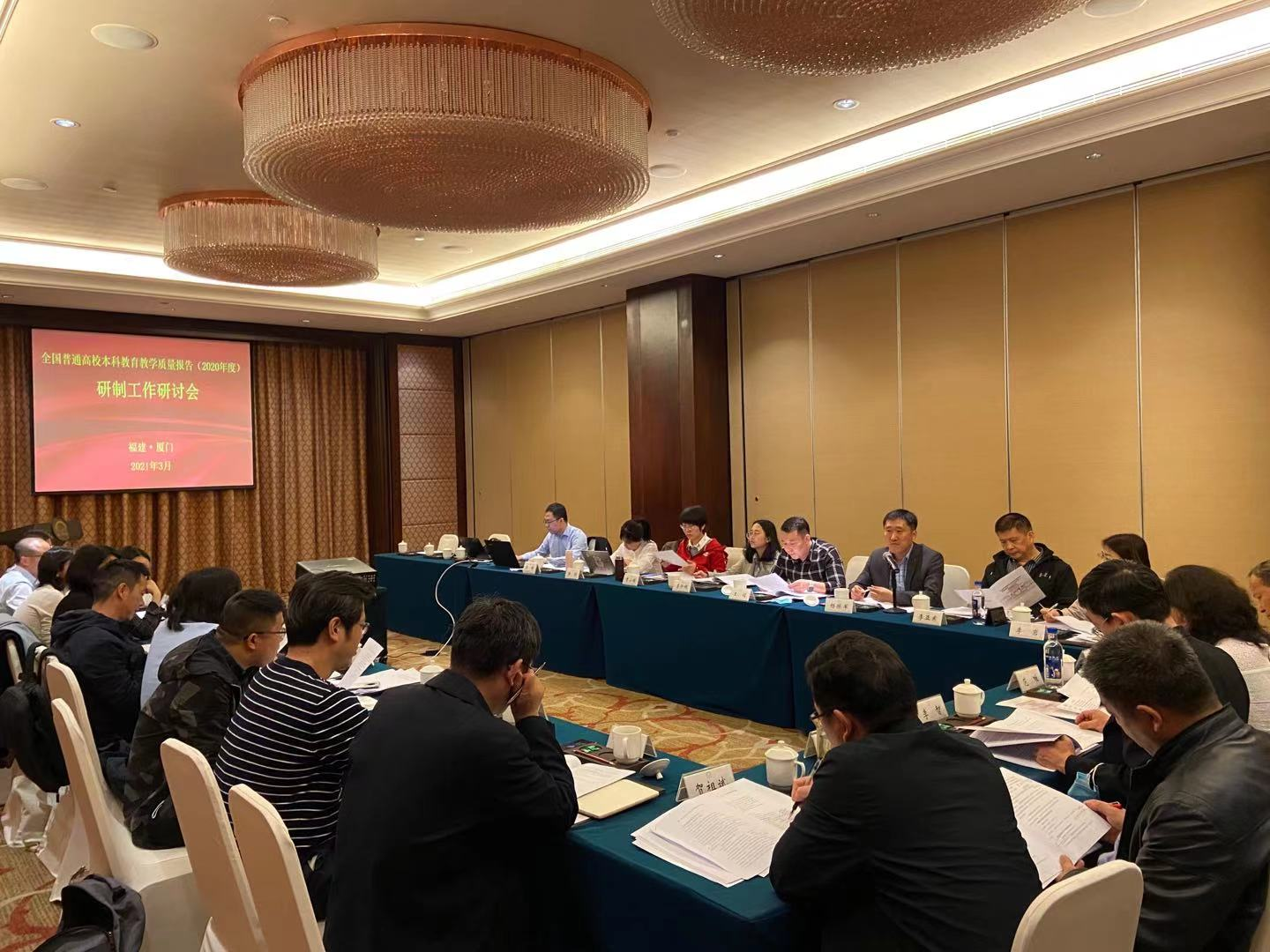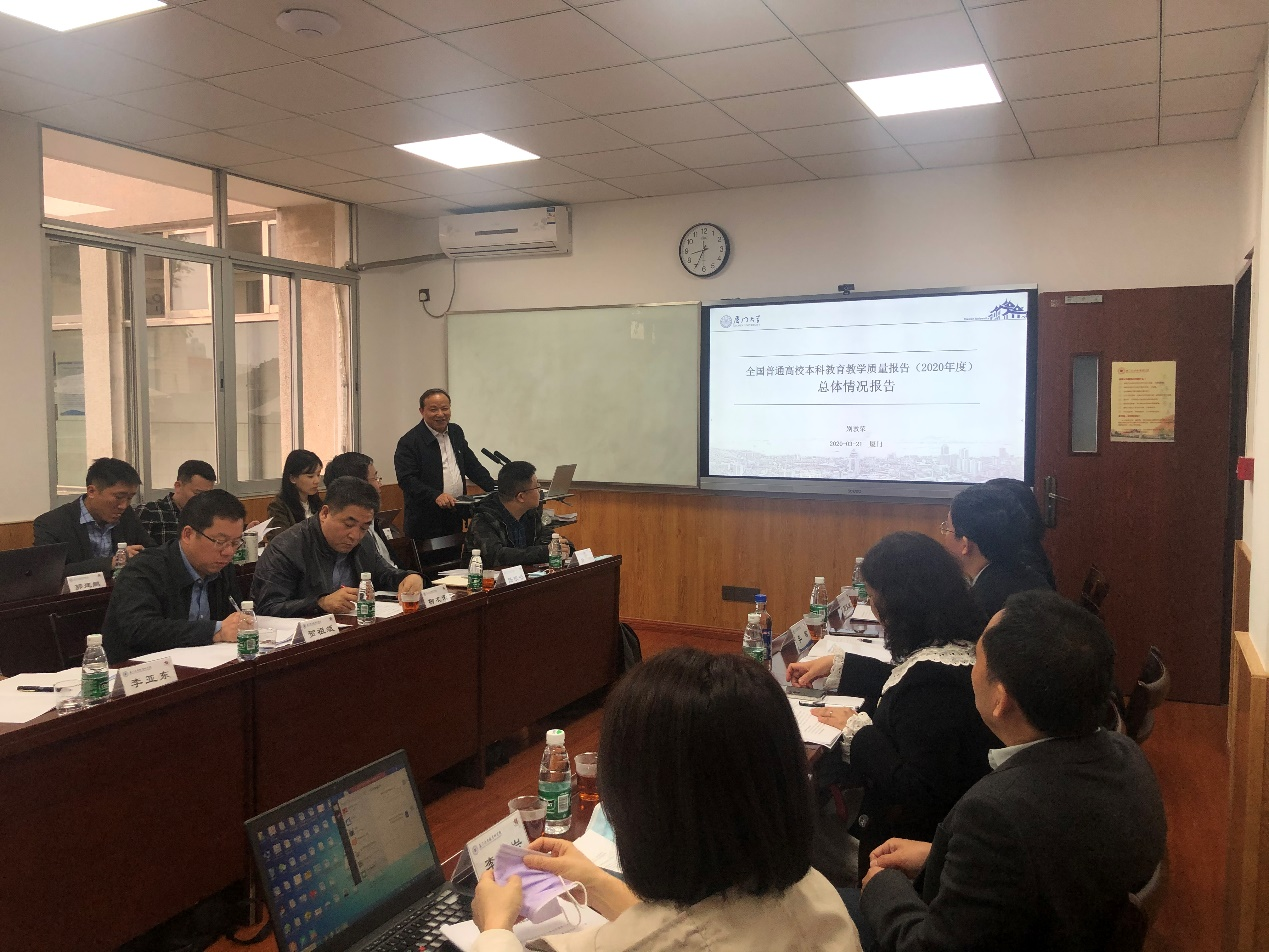 3月20日至3月22日,为推进《全国普通高校本科教育教学质量报告(2020年)》的研制工作,教育部高等教育教学评估中心在厦门大学教育研究院召开研讨会。评估中心主任范唯、副主任李智、综合处处长李岩,广西师范大学校长贺祖斌教授,池州学院校长柳友荣教授,厦门大学教育研究院党委书记刘振天教授、院长别敦荣教授以及各参与研制高校有关专家参加,别敦荣主持会议。