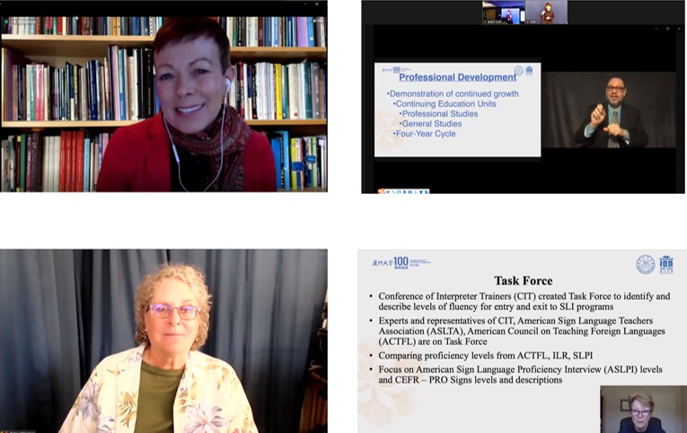 本次论坛的另一重要活动——手语翻译教育与评价专家论坛于4月3日上午召开。论坛由担任中国聋协手语翻译委员会副主任的肖晓燕教授主持。本场专家论坛邀请到国际手语翻译界权威学者和主要手语翻译协会负责人参加,包括世界手语翻译协会(WASLI)现任会长Christopher Stone和前会长Debra Russell,美国手语译员注册中心(RID)主席Jonathan Webb,全美手语翻译教师中心(TIEM)主任Betsy Winston,以及世界知名的美国加劳德特大学手语翻译科研和教育项目的学术带头人Cynthia Roy等。中国国内应邀出席的嘉宾包括教育部高等学校特殊教育指导委员会专家、国家手语和盲文研究中心主任顾定倩教授,中国聋协手语研究专家仰国维等。