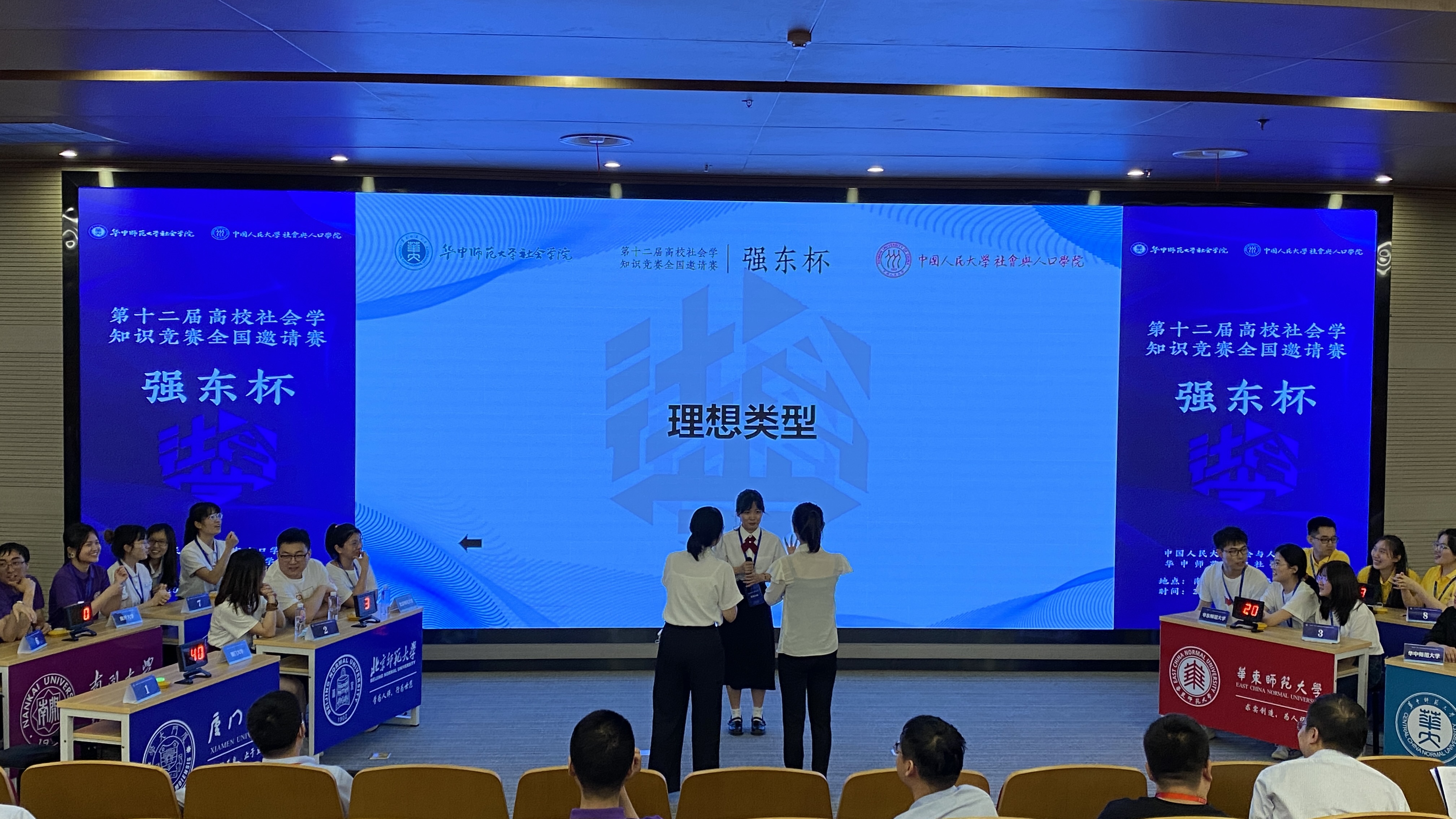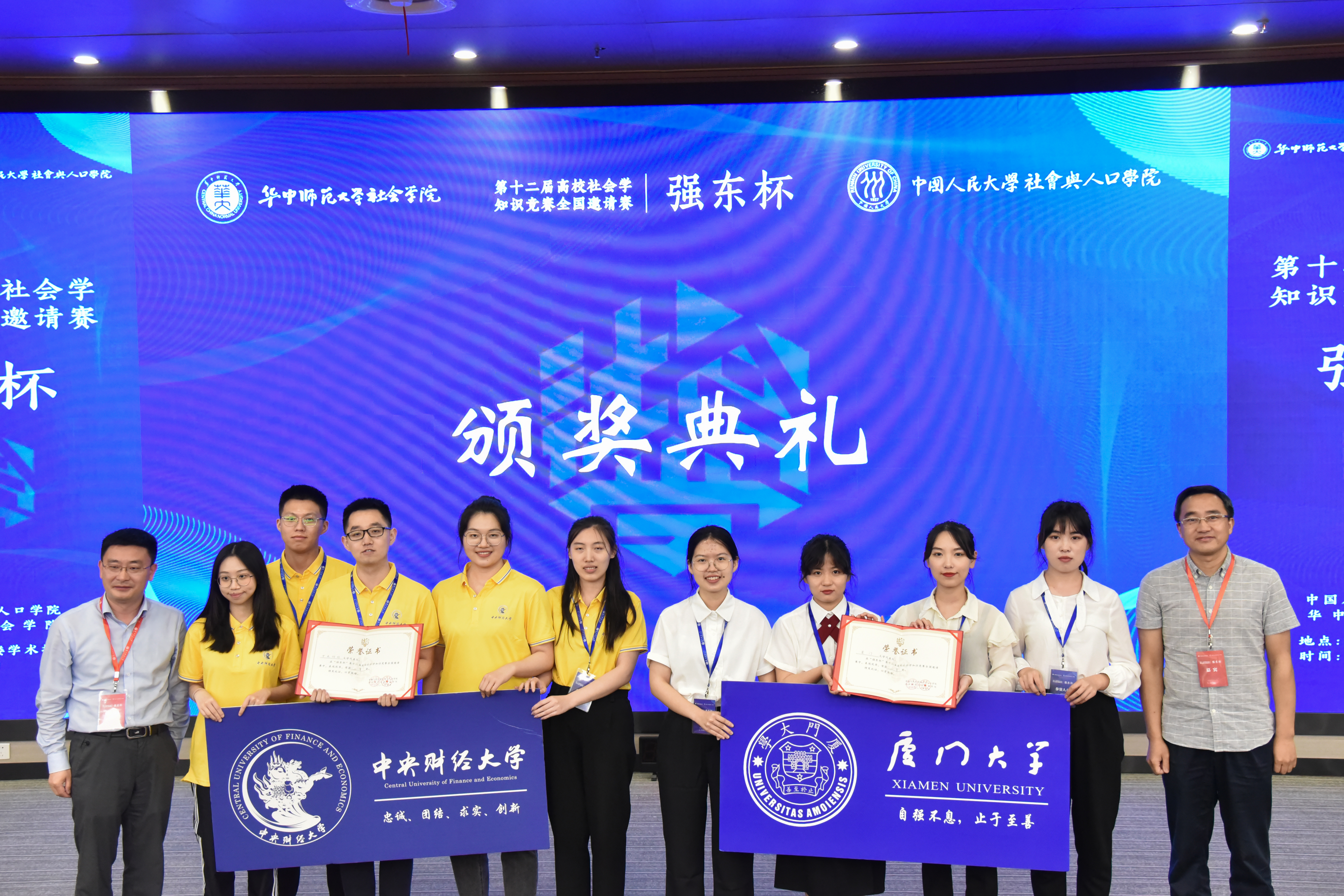 2021年5月29日,武汉南湖之滨,由中国人民大学社会与人口学院、华中师范大学社会学院共同主办的“强东杯”第十二届高校社会学知识竞赛全国邀请赛顺利举行,我校社会与人类学院首次获邀参赛。由人口与生态研究所所长龚文娟副教授、社会学系卜玉梅副教授指导,社会学系助理教授汪子臻、学院团委书记石林伟带队,张娜、陈燕、陈孜芝、赵静同学组成的代表队前往参赛,最终在20所高校中脱颖而出,夺得大赛二等奖。