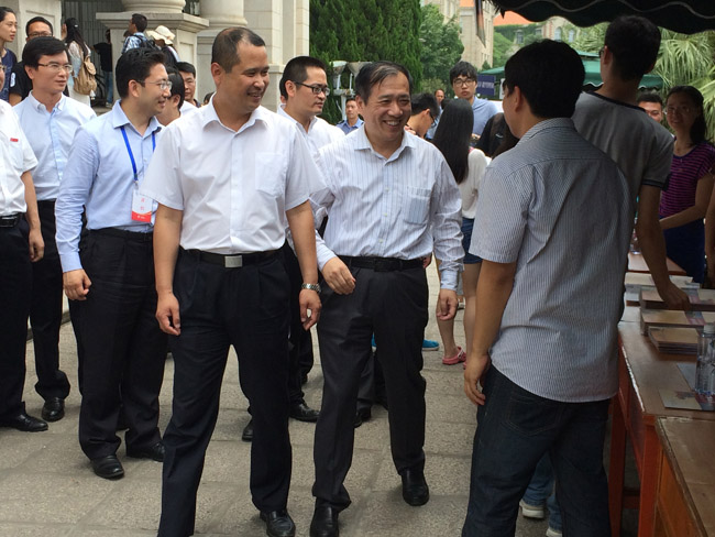 校党委书记杨振斌、副书记林东伟专程来到咨询现场,问候现场工作人员,询问招生情况,并和考生、家长亲切交谈。