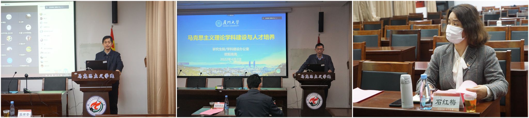 马克思主义学院党委书记石红梅作总结发言。她强调,要提高政治站位,深刻认识马克思主义理论一流学科建设的重大战略意义,要锚定目标、坚定方向,坚持面向理论前沿和国家发展需求,围绕重点研究方向,凝练学科特色,打造学科优势,激活内生动力,有效整合力量,实现新的突破,扎实推进厦门大学马克思主义理论学科的内涵建设、特色建设、高质量建设。