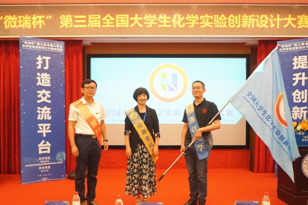 最后,朱亚先,厦门大学化学化工学院党委书记宋毅,浙江大学代表进行大赛会旗交接。
