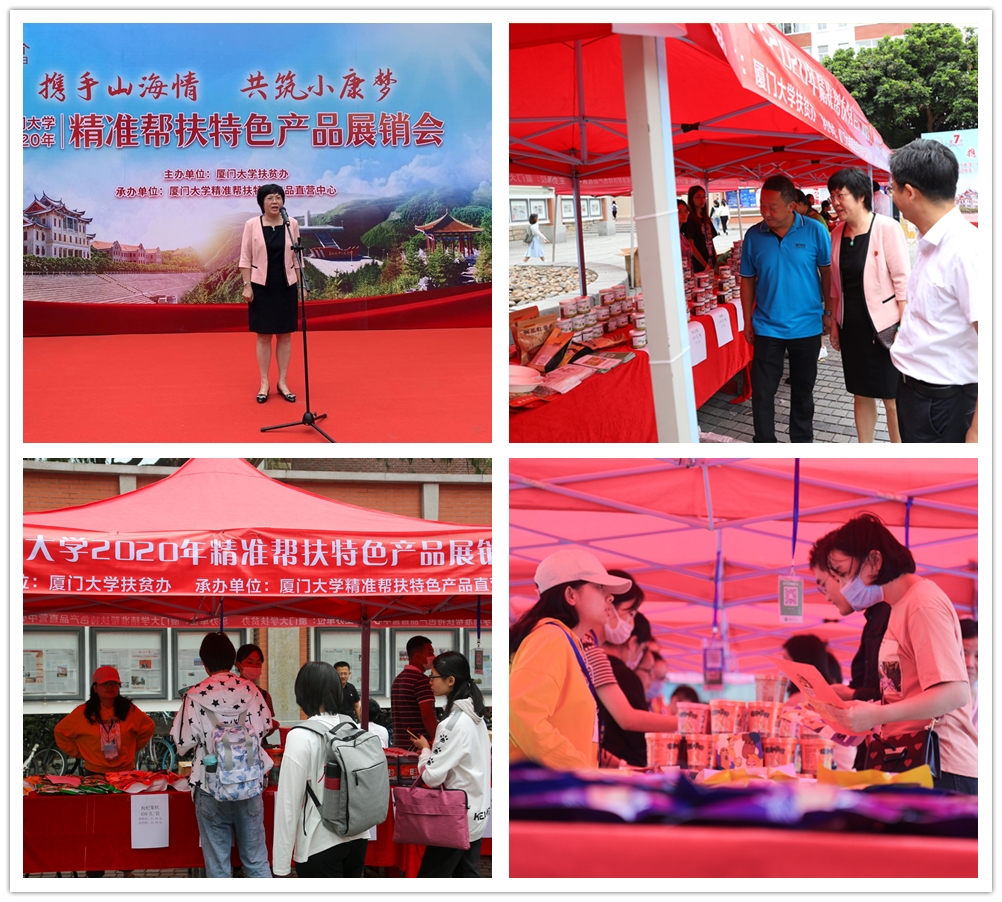 在第7个全国扶贫日,也是第28个国际消除贫困日来临之际,10月16日上午,厦门大学2020年精准帮扶特色产品展销会在三家村广场举行。副校长邓朝晖宣布展销会开幕。校工会常务副主席叶鹏飞主持。