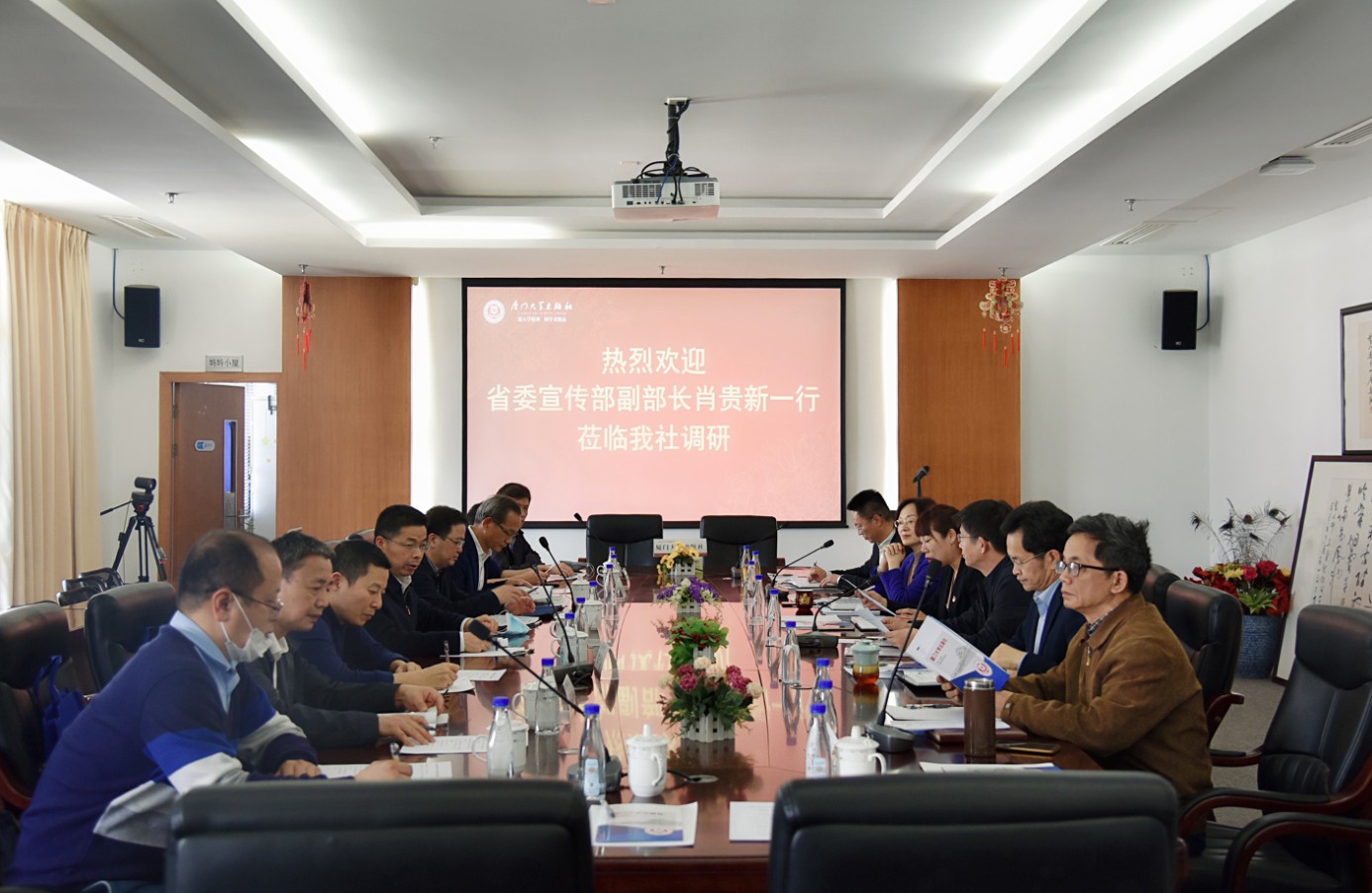 3月11日下午,福建省委宣传部副部长、一级巡视员、省新闻出版局(版权局)局长肖贵新一行,在厦门市文化和旅游局党组成员、副局长陈章志等的陪同下,莅临厦门大学出版社开展调研。厦门大学党委副书记徐进功、出版社党政领导班子成员及相关科室主任出席座谈会,座谈会由出版社党总支书记洪秋霞主持。