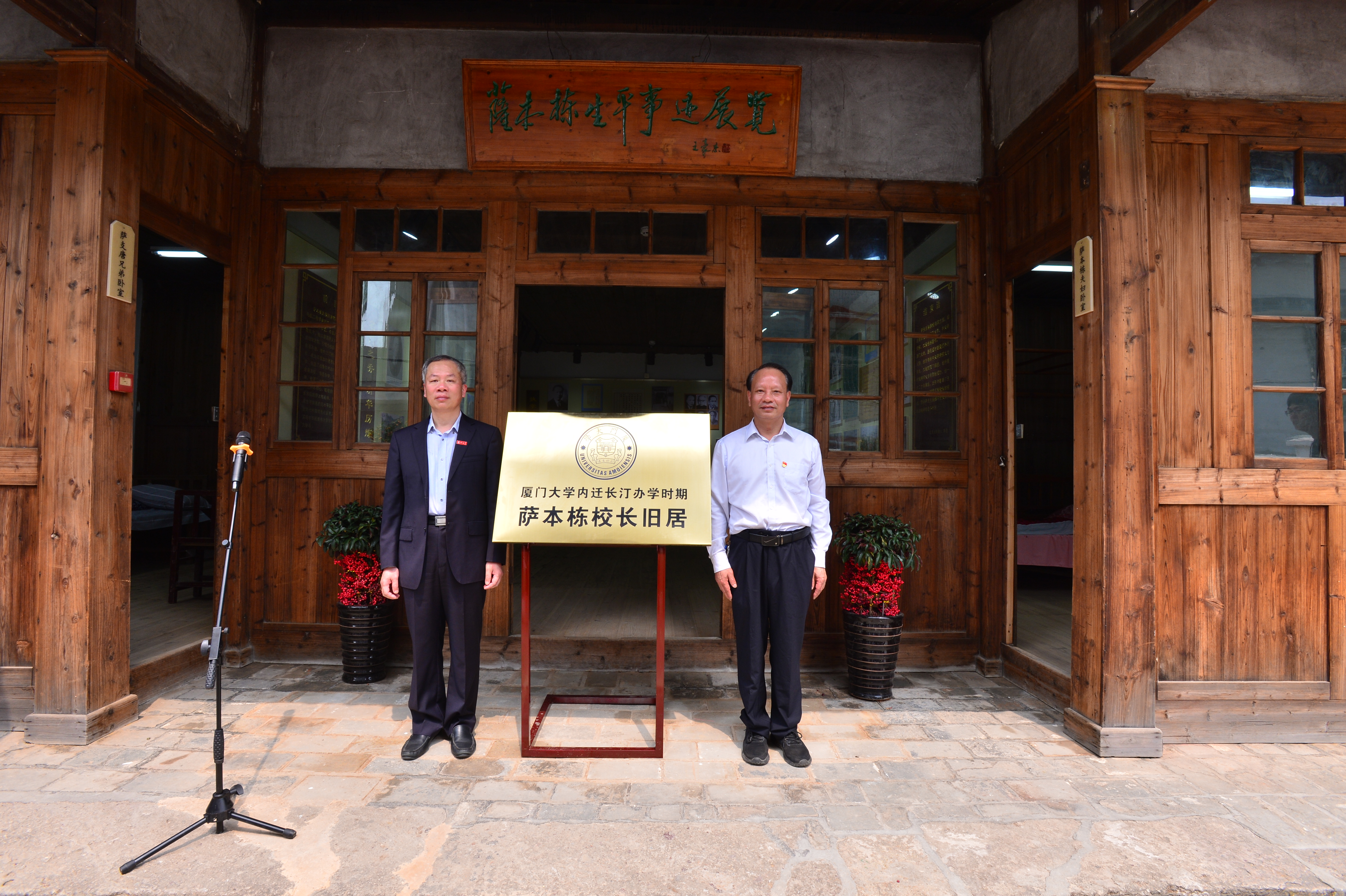 2021年3月29日上午,厦门大学长汀旧校址修缮竣工暨萨本栋校长旧居揭牌仪式在长汀县厦大旧校址隆重举行。厦门大学校长助理、基建处处长张建霖,厦门大学1976级经济系校友、福建省交通运输厅巡视员、福建省高速公路有限责任公司原董事长唐建辉,厦门大学管理学院党委书记邱七星,厦门大学嘉庚学院副院长谢火木,厦门大学招投标中心主任王沈扬,厦门大学百年校庆办专职副主任张胜强,厦门大学校友总会秘书处副秘书长陈玲,中共长汀县委常委兰思义,长汀县教育局局长吴江滨,厦门大学长汀校友会常务副会长李兆年、程汀贤以及部分校友代表出席仪式。厦门大学管理学院党委副书记戴蓥主持仪式。