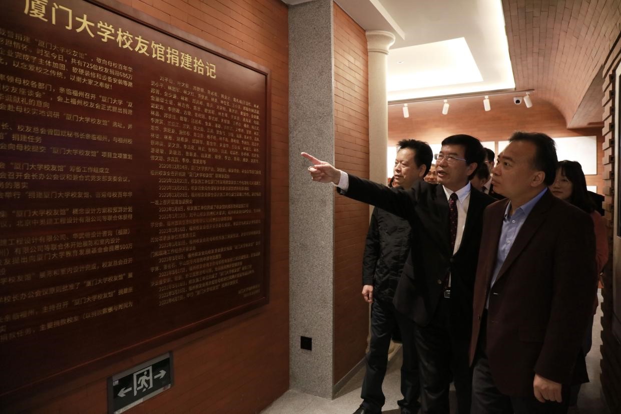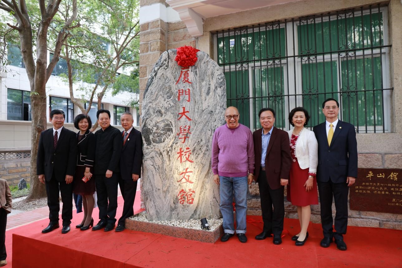 4月7日下午,厦门大学校友馆揭牌开馆活动在思明校区大南6号楼举行。陈嘉庚先生后裔陈立人,校党委书记张彦,副校长、校友总会副理事长邱伟杰,校友总会副理事长詹心丽,校友馆主要捐资人、1978级中文系校友、福建华闽进出口有限公司董事长刘平山,福建省企业与企业家联合会会长刘捷明,福州校友会原会长叶文振、副会长林冰共同为校友馆揭牌。