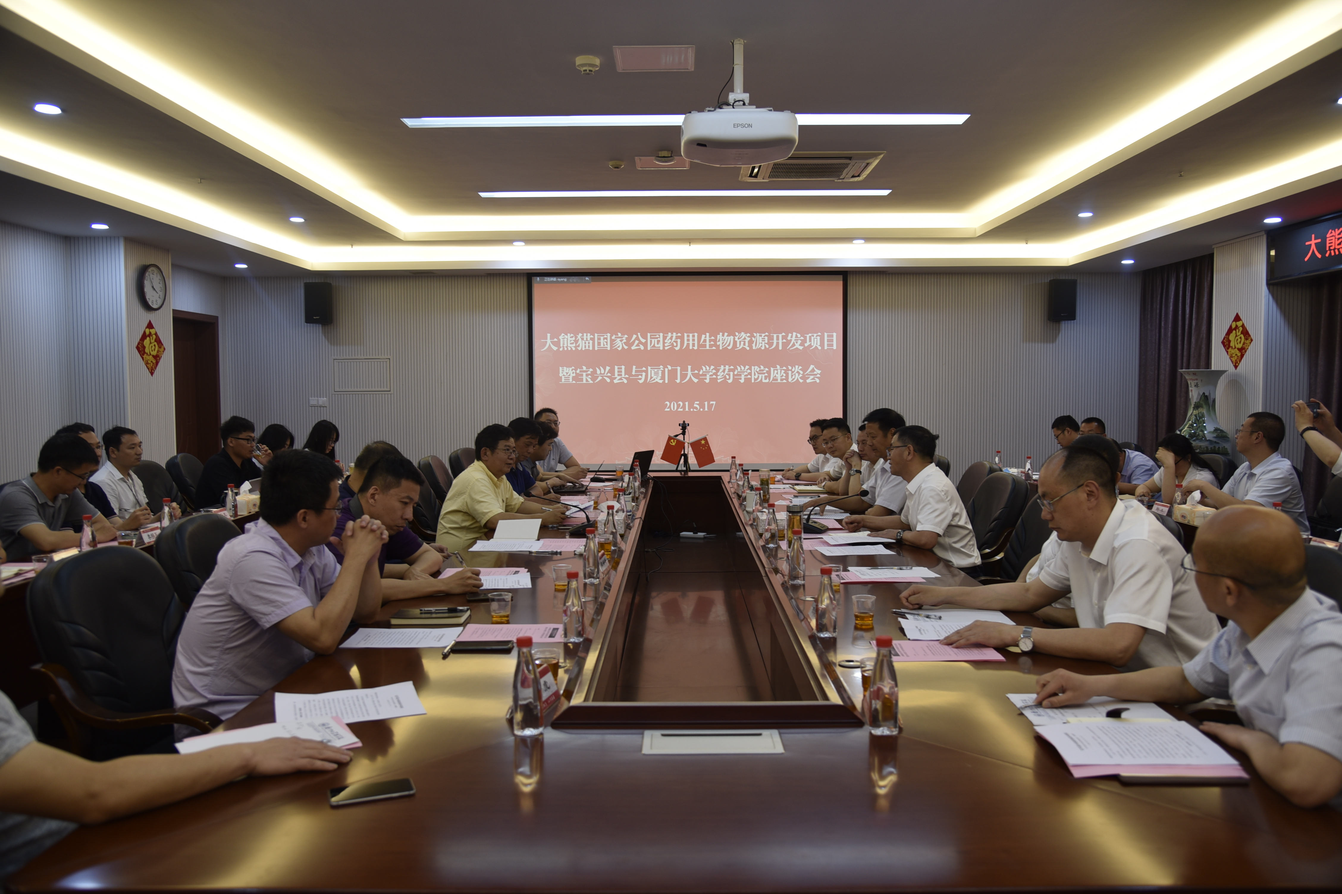 近日,四川省雅安市政协主席戴华强,宝兴县县委副书记、县长罗显泽率雅安市宝兴县经贸代表团一行18人莅临厦门大学药学院,商谈大熊猫国家公园药用生物资源合作开发事宜。中科院院士赵玉芬,厦门大学药学院院长张晓坤,副院长吴振、曾锦章等出席座谈会。