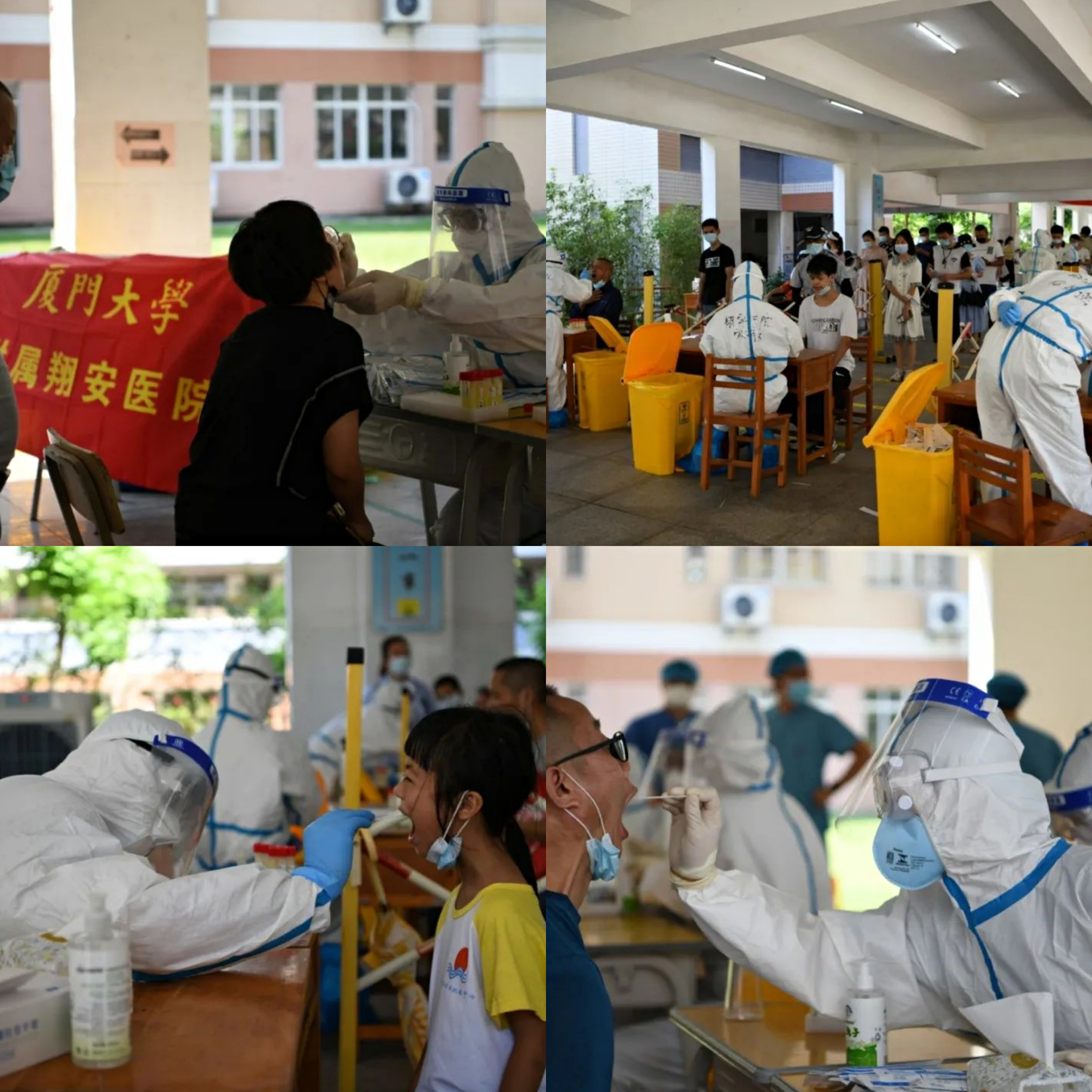 9月13日晚上21时,厦门大学附属翔安医院接到厦门市疫情防控指挥部通知,需紧急抽调60人组成核酸采样应急队于14日支援同安区,各科室紧急部署动员,应急队成立。同时,厦大翔安医院思明院区(厦大医院)在接到应急增援思明区核酸采样的通知后立刻派出30名医护人员前往支援。