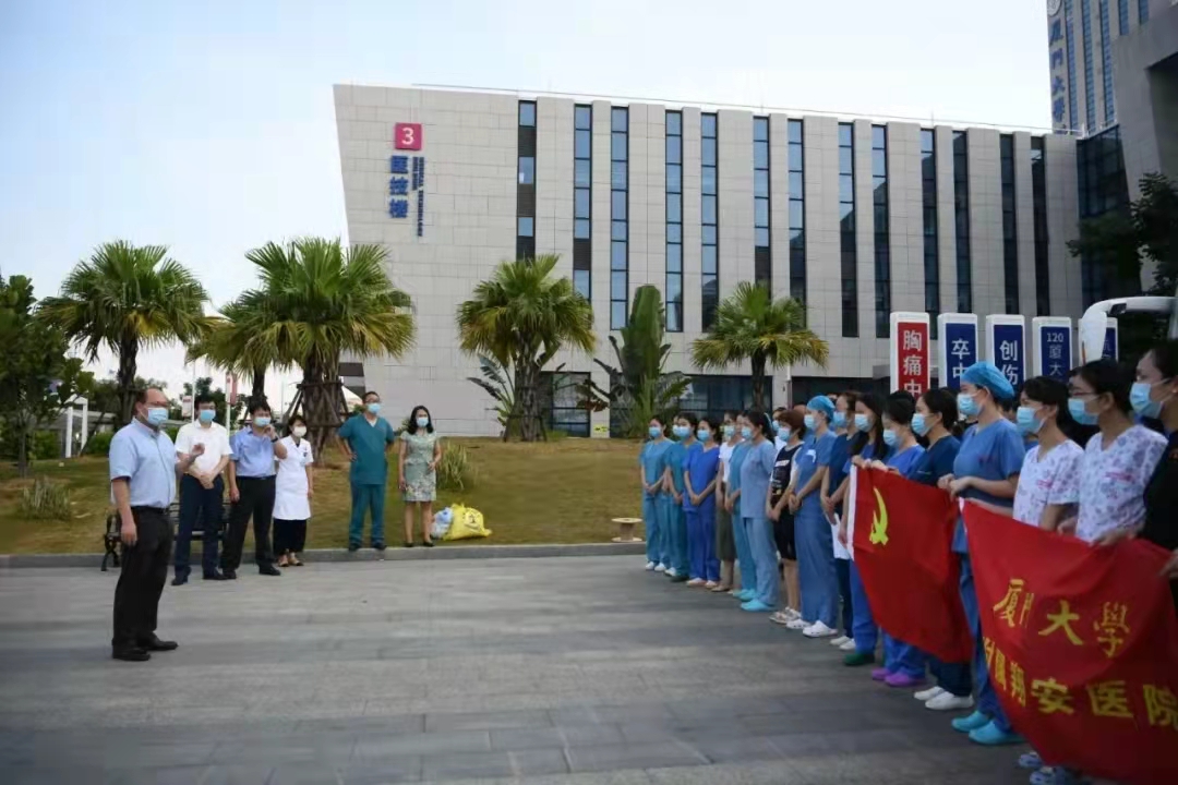 厦大翔安医院执行院长张国君对出征同安的核酸采样应急队提出三点希望:一是此次是厦大翔安医院派出的人数最多的应急支援队,希望大家精诚团结,要有信心和决心做好此次支援工作;二是希望大家发挥专业特长,充分体现厦大翔安医院医护人员的良好素质和高超技术;三是要注意安全,平安归来。