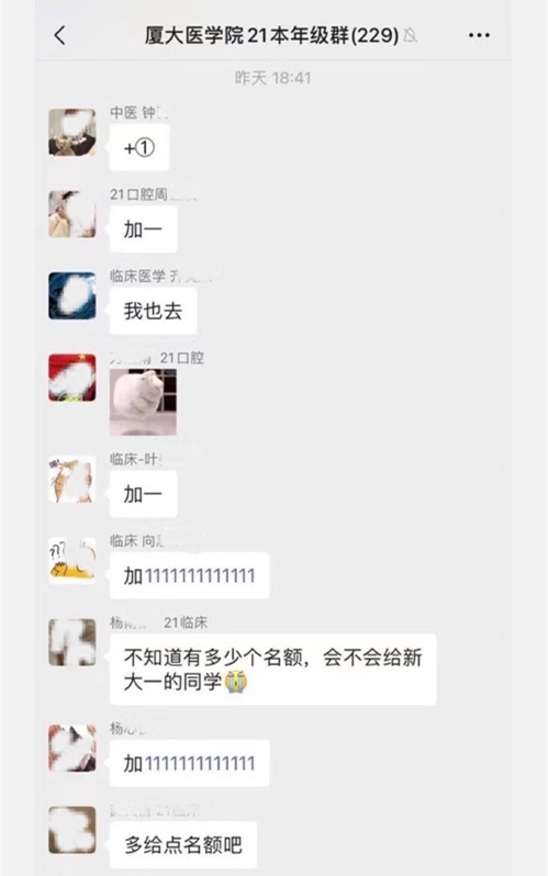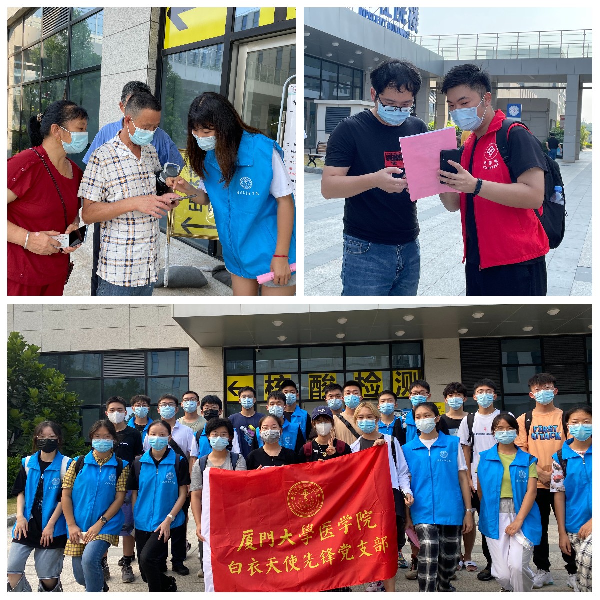 “我报名思明区志愿者”“报名翔安区志愿者”“已报名中山医院检验科”“去医院可太行了”“多加点志愿者名额吧”“我有执医证,可以支援采样”“我们一定保护好自己的安全,保质保量完成任务”……9月15日,新学期伊始,医学院学生积极响应市卫健委和学校学院的号召,在厦大各附属医院及社区核酸检测志愿服务中顺利完成了开学第一课。