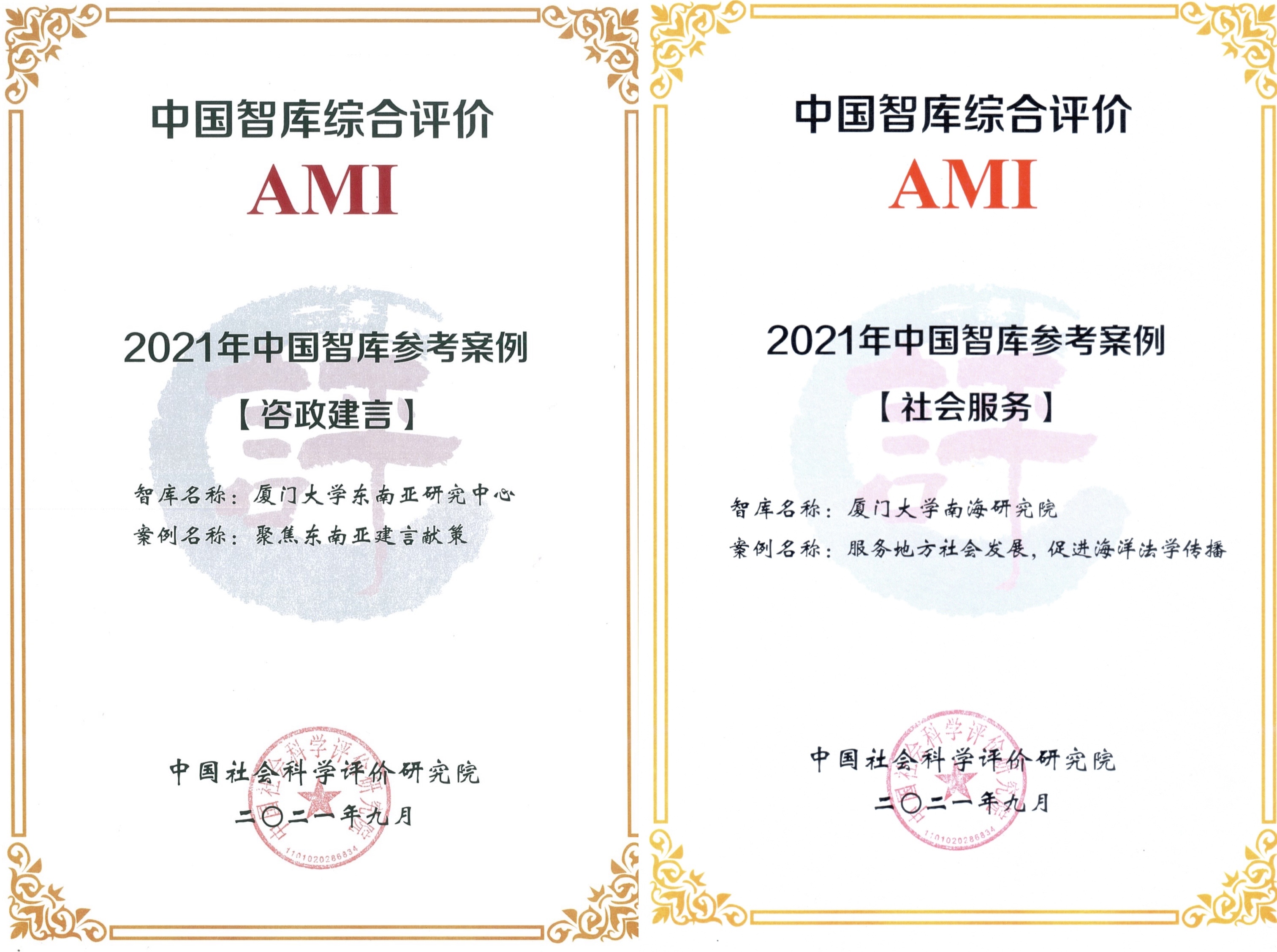 会上公布了第二轮“中国智库综合评价研究项目”智库建设特色案例评价结果,全国共19个单位获评组织参与奖、56项案例入选特色案例、63项案例入选参考案例,其中,我校社科处获组织参与奖,南海研究院、东南亚研究中心申报案例入选参考案例。