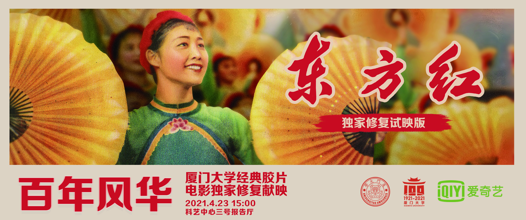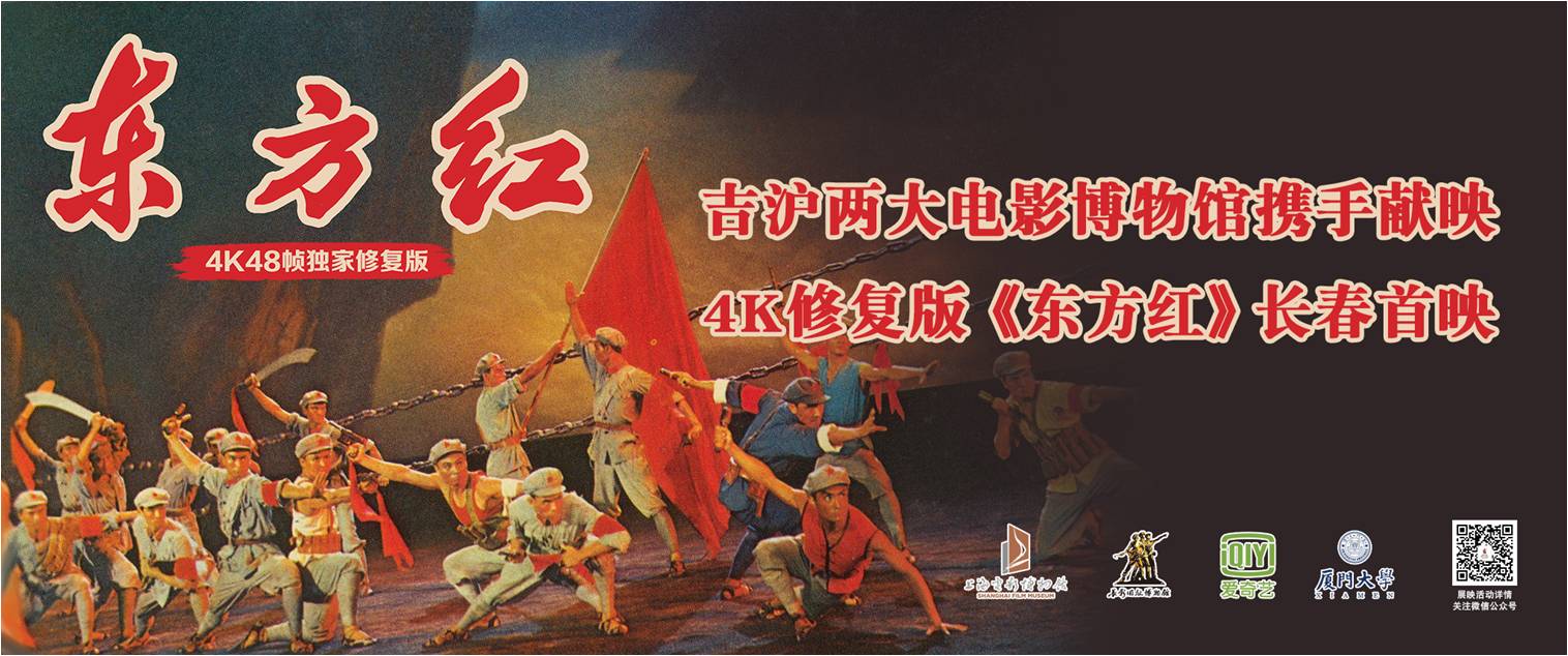 11月27日,厦门大学电影学院4K修复版彩色歌舞影片《东方红》于吉林省长春市长影旧址博物馆(长影电影院)举行首映仪式。此次展映系长影旧址博物馆与上海电影博物馆联袂推出的放映活动,影片选用厦门大学-爱奇艺电影修复联合实验室(以下简称“实验室”)于今年3月修复完成的4K、48帧数字修复版本,厦门大学电影学院音像文献中心(以下简称“中心”)负责本次影片的放映与映后交流工作。