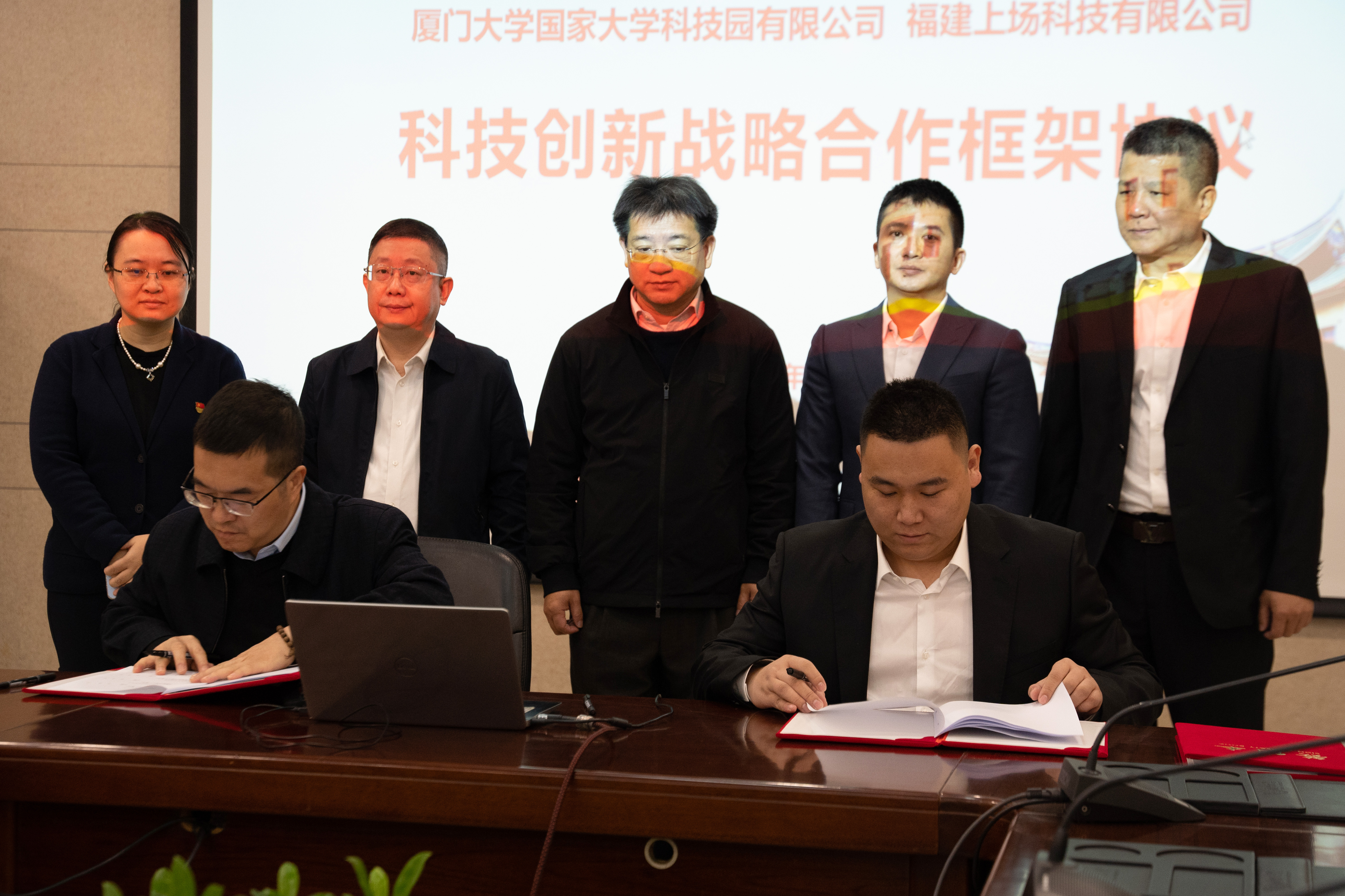 12月20日,厦门大学资产经营有限公司、厦门大学国家大学科技园有限公司、嘉庚高新技术研究院与福建上场科技有限公司就校企共建、搭建“产、学、研、用、金、服”科技创新服务平台在厦门大学颂恩楼举行“科技创新战略合作框架协议”签约仪式。