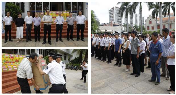 随后,赖虹凯和校工会、后勤集团班子成员一起为员工们送上了空调扇、凉茶等清凉礼包。学校的关心和慰问,使后勤员工们倍感温馨和鼓舞。高温仍将延续,但员工们纷纷表示,一定要把学校的关心化作工作的动力,一如既往地坚守岗位,一丝不苟地做好服务保障,为学校“双一流”建设做出自己的贡献。