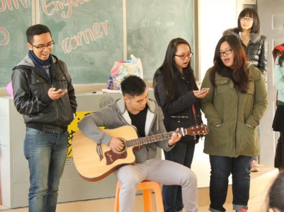 与初一年级热火朝天的加油呐喊声一样热烈的,是初二各班的主题活动。志愿者们利用专业和资源优势,开展了“英语角”、“文学鉴赏”和“主题班会”等主题活动:1班学生们与海外生一起排演情景剧;2班的志愿者们邀请了海外生和远赴新西兰当汉语教师的学长为大家介绍“外面的世界”;3班通过《鲁滨逊漂流记》、《格列佛游记》等小说,让学生们感受到了文学的想象力和对生活的新的认识……