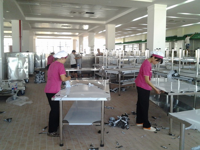 翔安丰庭餐厅担负着重要的迎新军训供餐工作。为保证8月24日顺利营业,给学生提供卫生、整洁的就餐环境,经过近几个月紧锣密鼓的筹备,食堂各项工作都到了最后的冲刺阶段。不管是前厅人员、洗刷人员还是管理人员,都丝毫不敢懈怠,争分夺秒奋战在学校的“后厨”里。