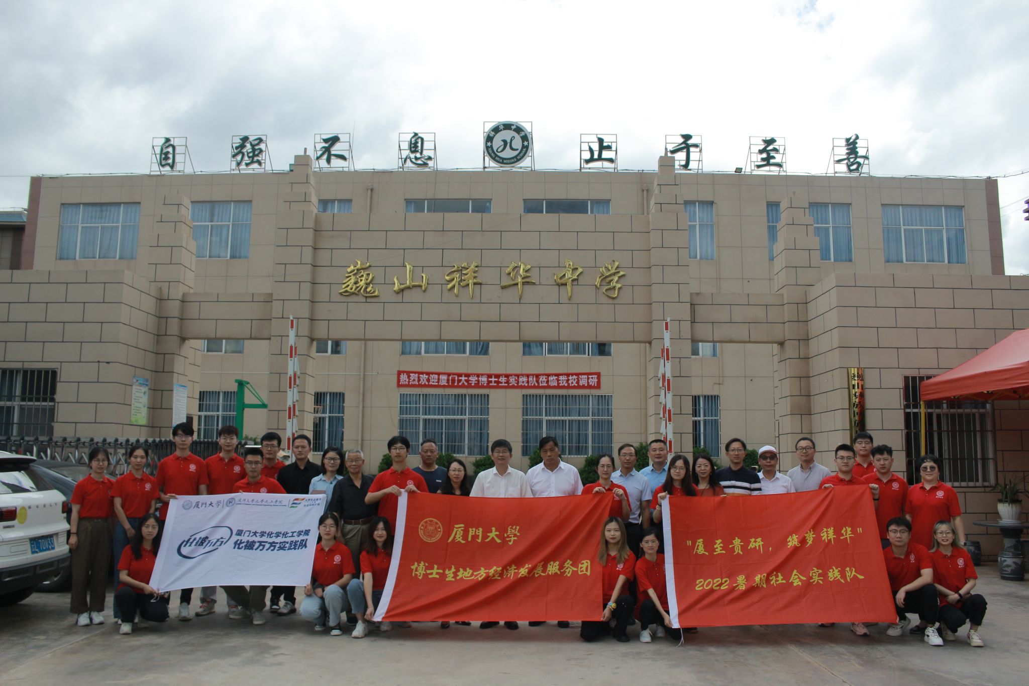 8月4日,调研组一行来到大理白族自治州巍山彝族回族自治县,看望化学化工学院“化被万方”和“厦至贵研,筑梦祥华”暑期社会实践队的 24 名学生。徐进功向大理州各级党政部门对厦门大学事业发展和校友工作给予的大力支持表示衷心感谢,对云南祥华教育集团董事长、厦门大学云南校友会会长高龙的教育情怀和办学理念给予高度评价。他表示,学校将加大力度推荐优秀学生来滇工作学习、开展社会实践。希望实践队员强化爱国情怀和责任担当,充分运用所学知识,回馈社会、服务社会、奉献社会,努力为乡村教育发展贡献厦大的青春力量。