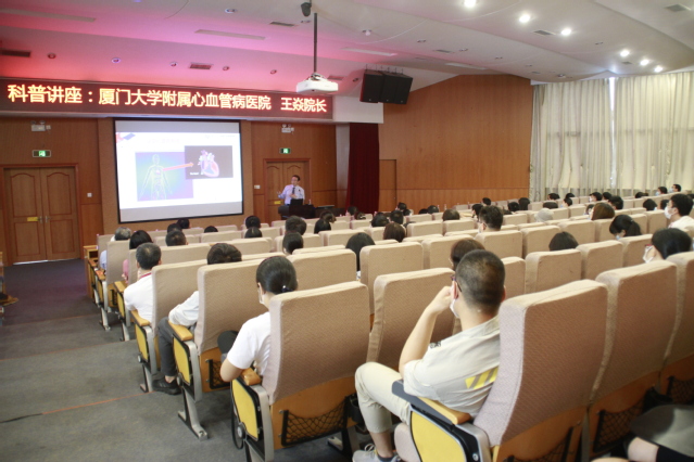 王焱以《爱“心“正当时》为题作了专题分享。他从自身多年的从医实践经验出发,结合丰富的案例和翔实的数据,以幽默风趣、通俗易懂的语言,系统介绍了冠心病、心律失常、心肌病等常见心血管疾病的定义、症状、危险因素、预防方法以及治疗技术等相关知识。他还从定期进行心血管专科体检,摒弃抽烟等不良生活习惯,控制高胆固醇饮食三个方面为大家给出了专业建议。