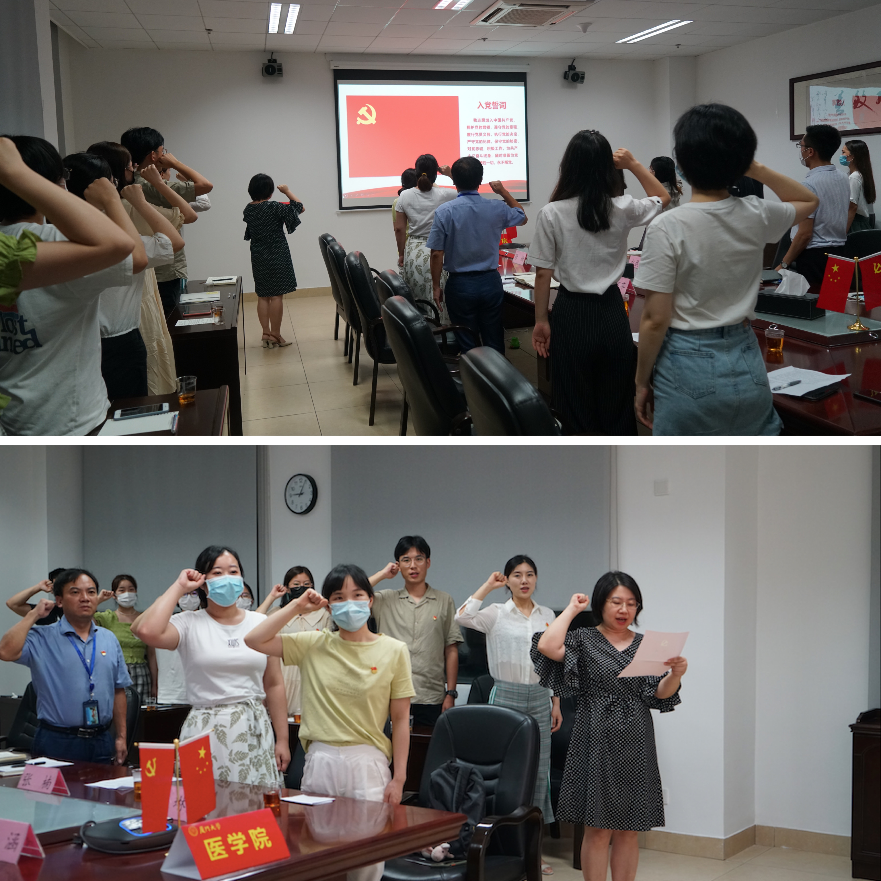 参会毕业生党员一一发言,讲述了自己作为党员在医学院的成长历程。他们表达了自己对医学院、对厦门大学的感谢与不舍,表明无论是继续攀登医学高峰,还是走上为人民服务的基层工作岗位,将会牢记自己党员的身份,谨记习近平总书记嘱托,做有理想、有本领、有担当的青年一代,坚定信仰、不惧风雨、勇挑重担,肩负起时代赋予的使命。毕业班辅导员方晨亮、邱超超、鲍小佳鼓励同学们胸怀天下、勇担责任,永葆党员的先进性,让青春在奋斗中更加闪亮。