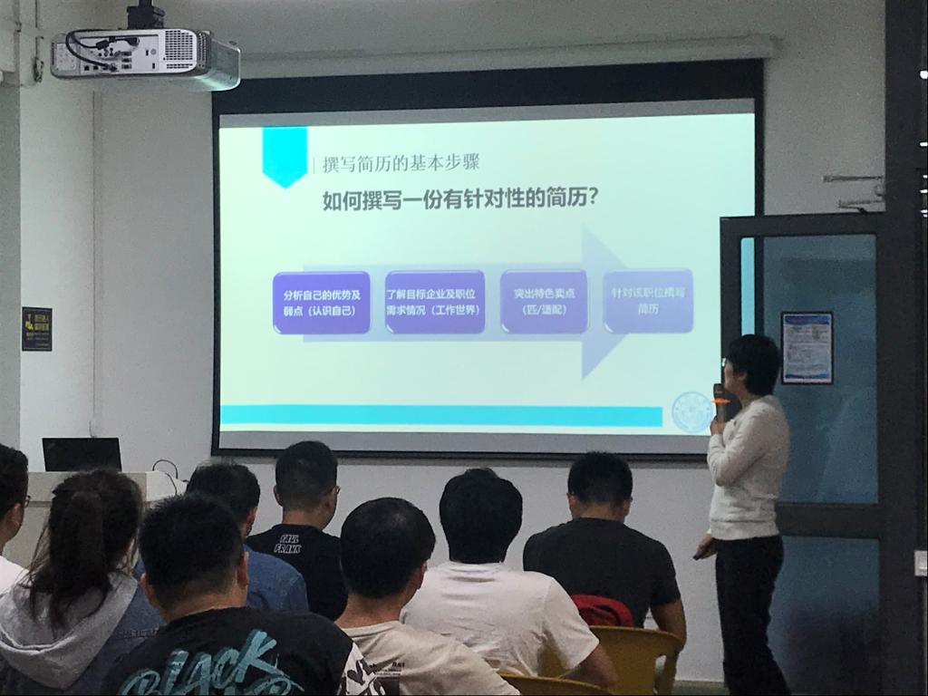 10月20日下午,航空航天学院简历制作与面试技巧讲座在 “一站式”空间再次开讲,学生处就业创业指导中心资深教师任艳青作为主讲嘉宾,以“一没奖学金,二没获过奖,三没当过班干部,学习成绩也不好,这简历该怎么写啊?”很多学生关心的问题开场,瞬间吸引了同学们的注意。之后,她通过现场对比5位往届生的简历,引导同学们作为企业HR的角色,对简历做出评判,从而得出企业录用的“黄金原则”--“不是选最优秀的候选人,而是选最合适的”!她鼓励同学们不要妄自菲薄,应从实际出发,分析企业招人需求和自身的匹配度,制作合理的简历并有针对性地投递,将大大增加面试成功的机率。之后,任艳青就简历的模块及语言做了进一步讲解,指导同学们做出自己的专属简历。讲座结束后,现场同学与她做了进一步的交流和沟通,气氛十分热烈。