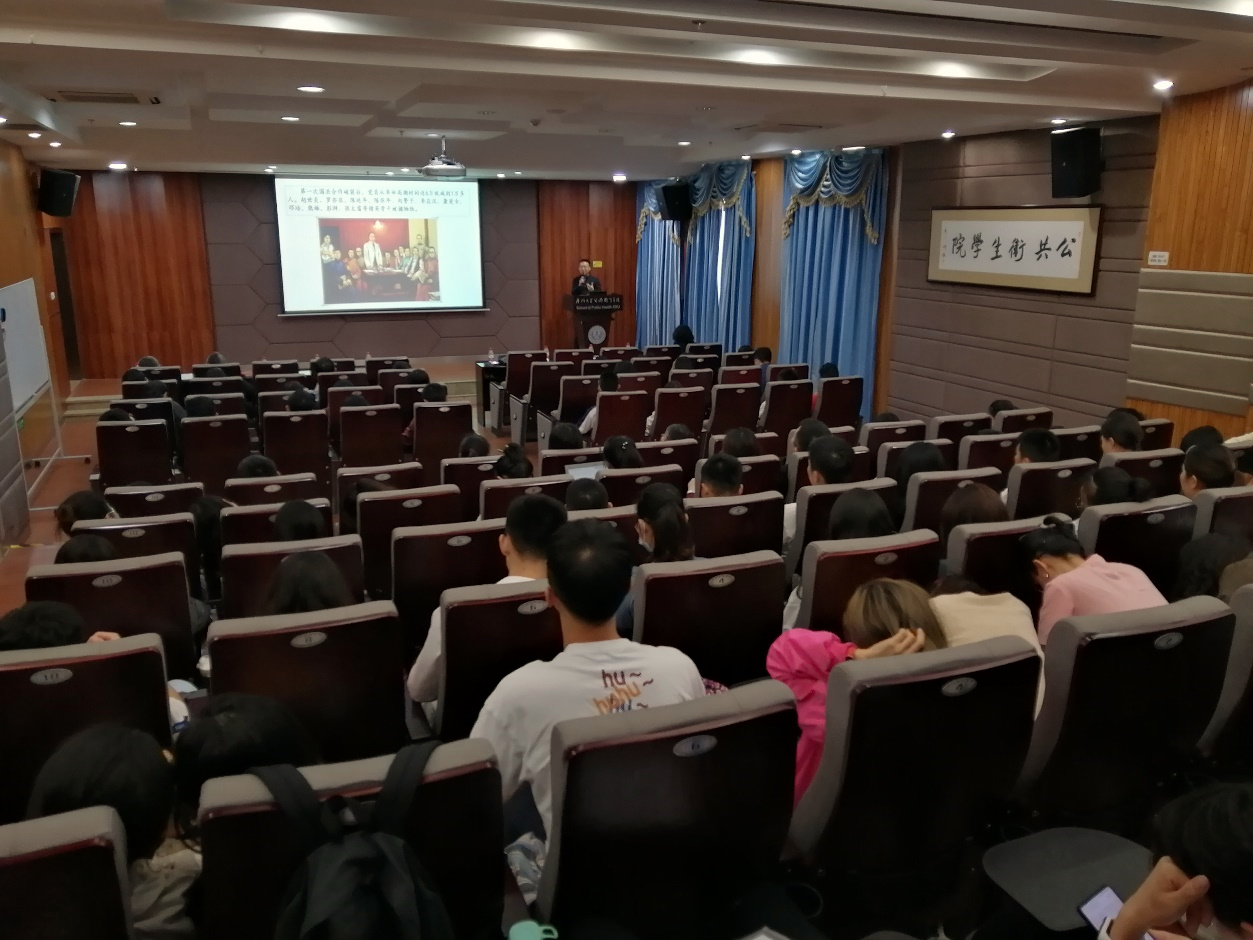 近日,学院邀请马克思主义学院贾凯副教授在曾宪梓楼101报告厅为全院师生作《阅史悟行:学习党史、新中国史、改革开放史、社会主义发展史的方法思维》的讲座。贾老师从开展“四史”学习的背景出发,系统梳理了开展“四史”学习的由来,重点分析了学习“四史”的重要性、其发展的基本脉络及如何把握“四史”之间的逻辑关系,总结强调了学习“四史”的核心要义。