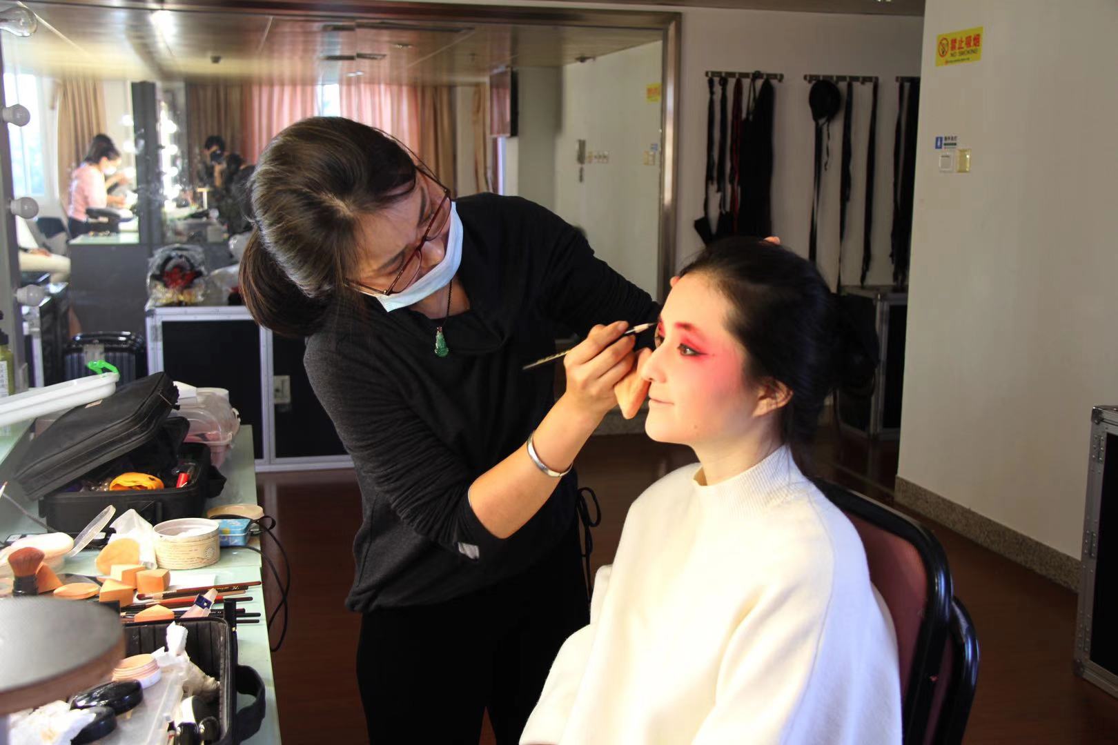 2017级国际学生史菲琪(阿富汗)开心地说道:“在化妆过程中我发现为了台上能演出不同的角色,大家很不容易。尤其是我尝试的旦角,我发现从化妆、打扮、台上表演及卸妆都不简单,特别是头上的假发和首饰需要好几个老师一起完成。是一个很美丽又独特的体验。”
