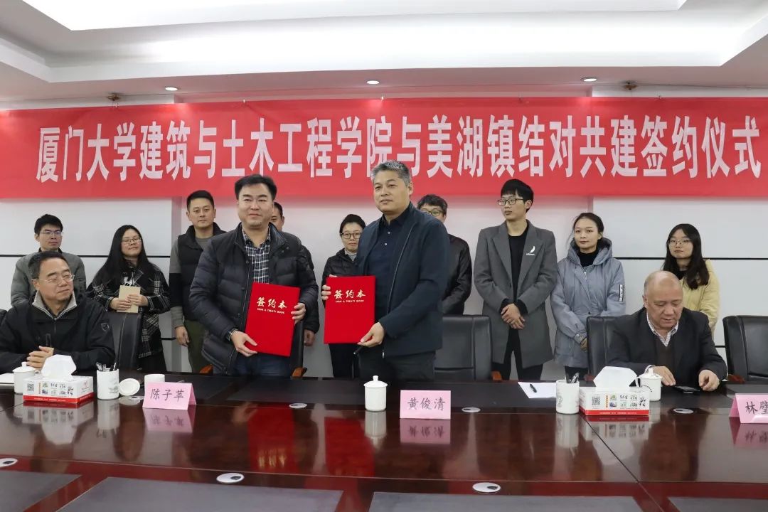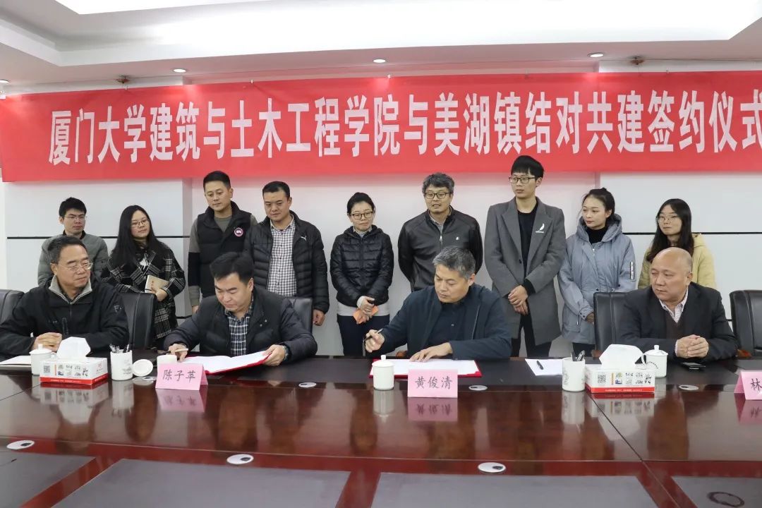 12月18日,厦门大学建筑与土木工程学院与泉州德化县美湖镇举行“校外社会实践基地”合作建设签约仪式。参加仪式的嘉宾有建筑与土木工程学院党委副书记黄俊清,城乡规划系副主任(主持工作)杨哲副教授,社会实践基地负责人、建筑系王量量副教授,李苏豫助理教授,管理学院旅游与酒店管理系系主任林璧属教授,美湖镇党委书记陈子苹等。