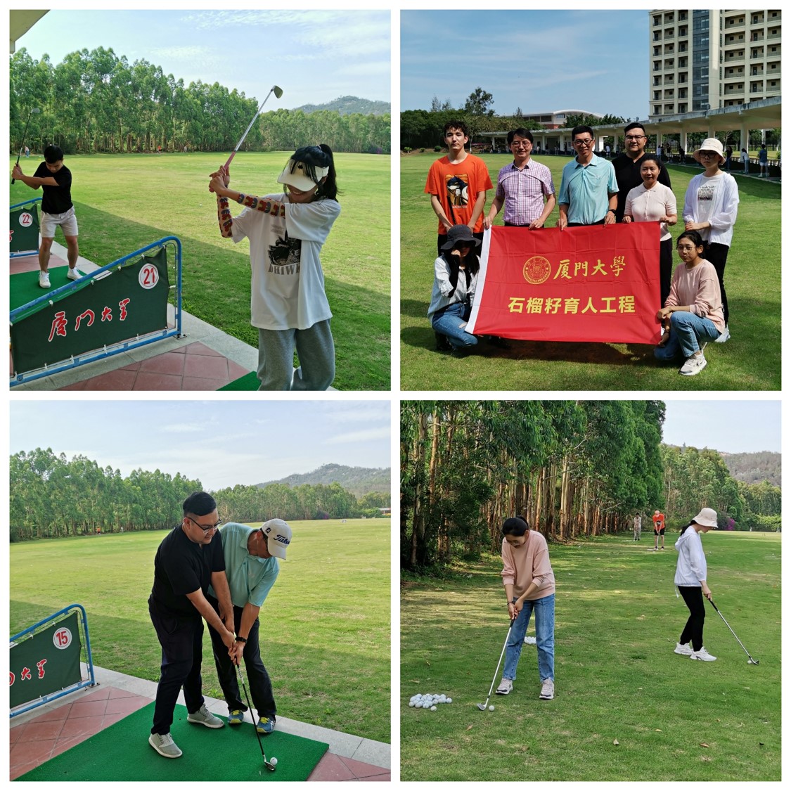 随后,“石榴籽”工作室师生,前往练习场,开展“绿茵起舞”高尔夫球体验活动。体育教学部高尔夫球专业教师傅亮为民族师生代表进行了高尔夫球教学指导。师生们学得非常认真,练得有板有眼。挥杆击球,举手投足之间都展现出了我校师生蓬勃向上的精神风貌。