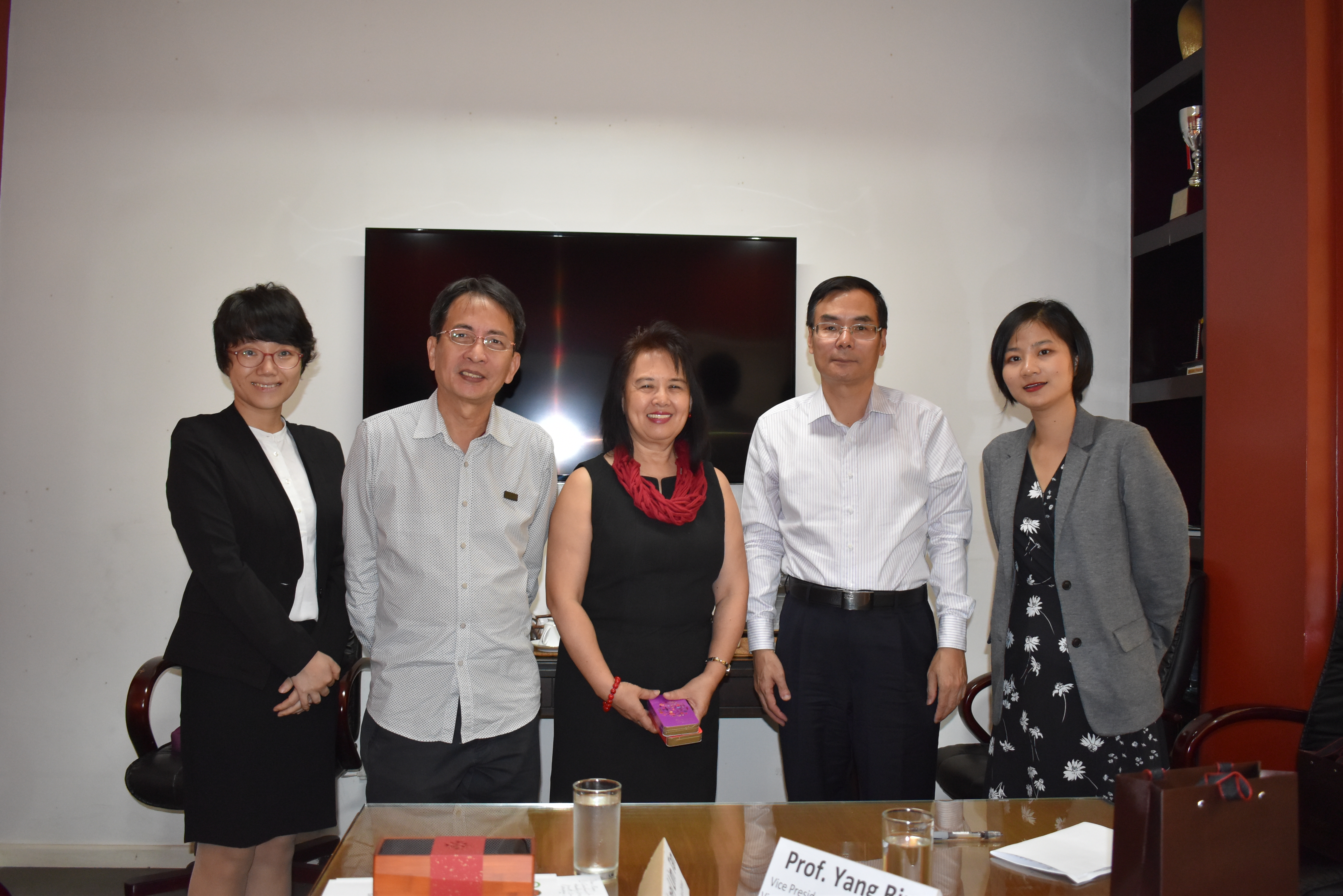 (右二为我校副校长杨斌;左二为前任菲律宾大学迪利曼校区校长、菲律宾大学孔子学院理事长Michael Lim Tan;左三为外方院长陈璐)