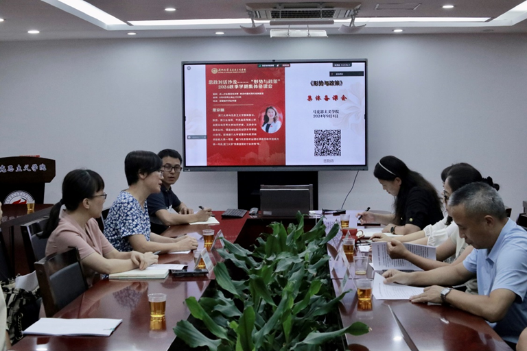 为推动新学期各项教学任务顺利开展,提升“形势与政策”课程的质量。9月4日,“形势与政策”课程组在囊萤楼302会议室召开“形势与政策”2024秋季学期第一次集体备课会。备课会采用“线上+线下”相结合的方式开展,学生工作部部长洪春生出席会议,“形势与政策”课程任课教师参加备课会。