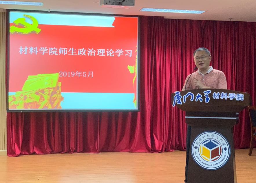 5月20日下午,材料学院党委在新楼201报告厅召开学院师生政治理论学习会,积极响应近日中共中央办公厅、国务院办公厅印发的《关于隆重庆祝中华人民共和国成立70周年广泛组织开展“我和我的祖国”群众性主题宣传教育活动的通知》要求,特邀原校党委党校常务副校长苏劲教授作了题为“壮丽七十年 奋进新时代”专题报告。学院党委理论学习中心组成员、全院教职工、学生党支部书记和委员、发展对象参加学习,会议由学院党委书记高忠华主持。
