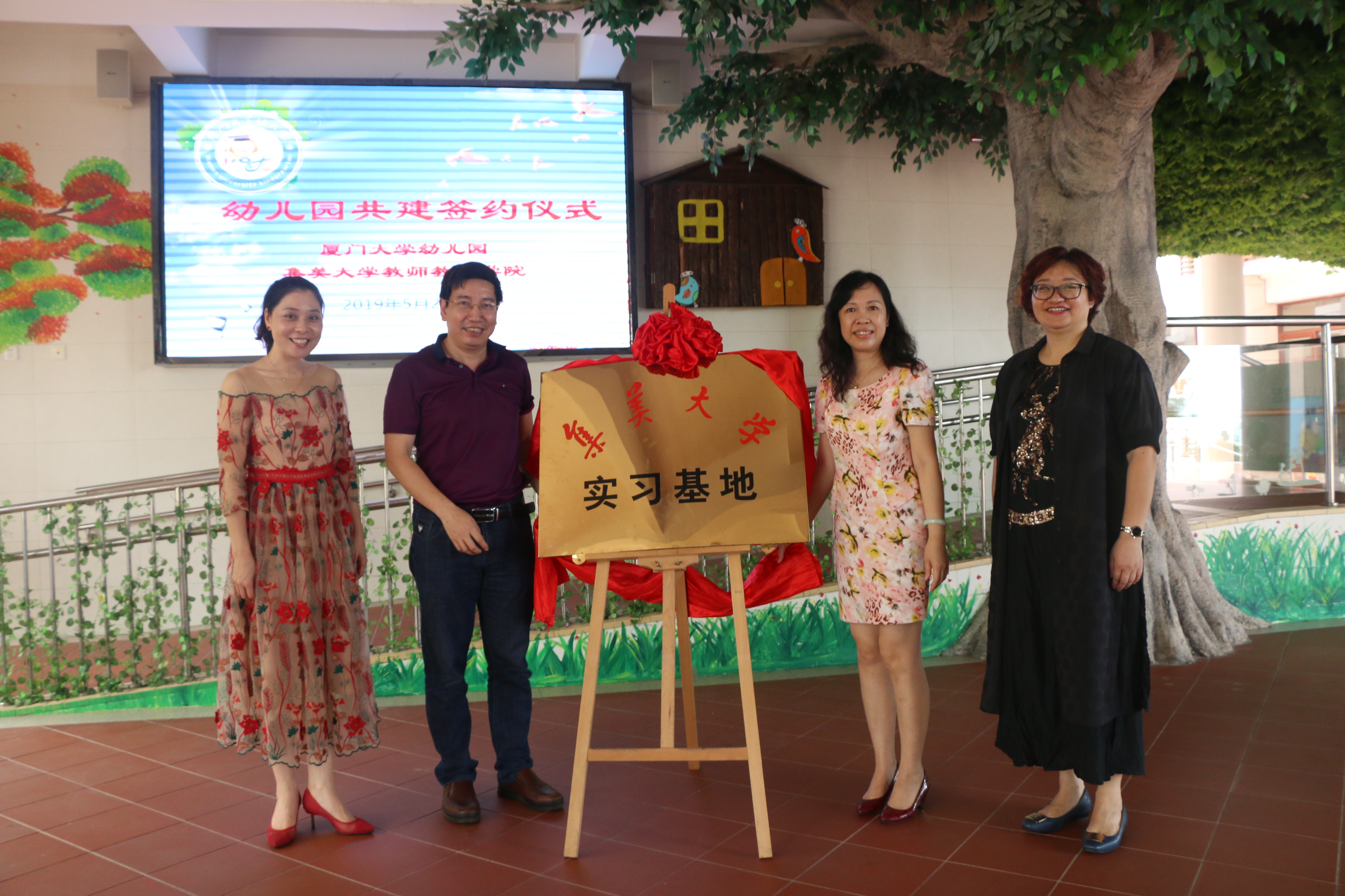 5月28日上午,厦大幼儿园与集美大学教师教育学院举行教育实践基地共建签约暨揭牌仪式。集美大学教师教育学院党委书记王娟、学前教研室主任林靖、我校资产与事务管理处副处长王沈扬、厦大幼儿园园长王美玲 、副园长杨怡茜等出席了此次签约仪式。