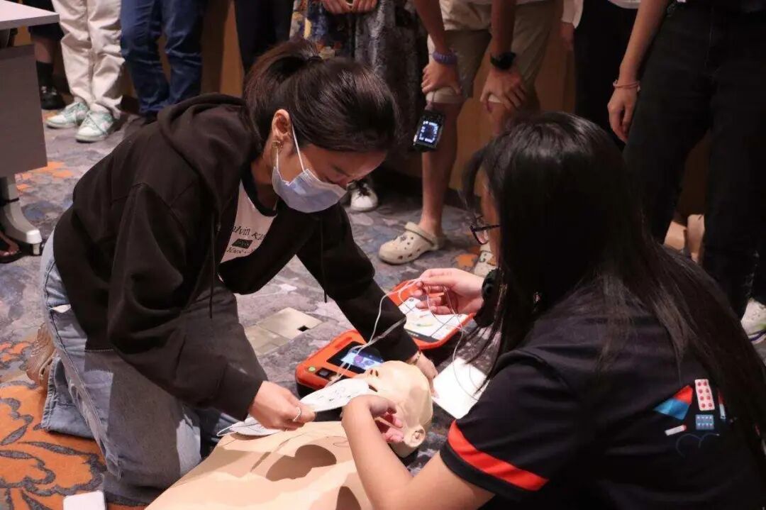 捐赠仪式结束后,学校在国际交流中心培训室举办了三场急救培训课程,由厦门大学心血管病医院健康管理副主任李琳琳,美国心脏协会急救课程区域主任导师、协调员林瀚涛主讲,内容涵盖心源性猝死的原因及预防、心肺复苏与AED操作流程、突发情况应对等。