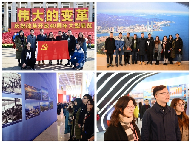 实践队参观了“伟大的变革——庆祝改革开放四十周年”大型展览。展览分为关键抉择、壮美篇章、历史巨变、大国气象、面向未来等6个主题展区,运用历史图片、文字视频、实物场景、沙盘模型、互动体验等多种手段和元素,充分展示改革开放40年来特别是党的十八大以来,人民群众生产生活发生翻天覆地的变化,中华民族迎来了从站起来、富起来到强起来的伟大飞跃。