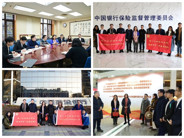 1月22日-27日,经济学院“经世济邦”实践队赴北京调研国家重点单位,探索新时代经济学科人才培养和职业发展。实践队由厦门大学经济学院习近平新时代中国特色社会主义思想读书社、厦门大学马克思主义政治经济学学习社和《资本论》研习社成员组成,经济学院党委副书记周蕾带队参加。实践队先后来到财政部、中国银保监会、中国证券业协会、中国建设银行总行、中国银河证券、全国中小企业股份转让系统有限责任公司等单位的相关部门调研,并前往中国国家博物馆参观“伟大的变革——庆祝改革开放40周年展览”。