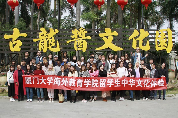3月1日,由来自22个国家的40名汉语国际教育硕士、经贸专业本科生以及汉语进修生组成的中华文化体验团,在海外教育学院/国际学院党委副书记罗俊峰、华文系教师陈端端和学生工作人员的带领下,深入同安区厦门宏旺味香有限公司(香贡贡)和古龙酱文化园,感受闽南经济文化、闽派盆景文化、古龙酱香文化等,感受改革开放40周年来,中国企业在传承匠心精神和实施科技创新、协同发展方面取得的伟大成就。