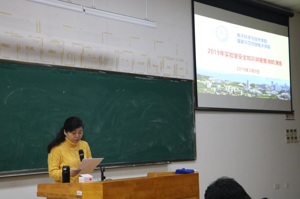 2019年3月9日,为提高全院师生的安全意识、丰富全院师生的安全知识与技能,电子科学与技术学院(国家示范性微电子学院)举办实验室安全知识讲座暨消防演练活动。校实验室与设备管理办公室主任施芝元教授、保卫处防火与交通安全管理科副科长孙俊逸、院党委书记吴国瑛、主持工作副院长陈忠教授、副院长董俊教授等出席活动,学院安全工作领导小组及办公室成员、各实验室安全负责人、各班级安全委员、各课题组学生负责人、研究生代表等近200名师生参加活动,活动由院党委副书记方银水主持。