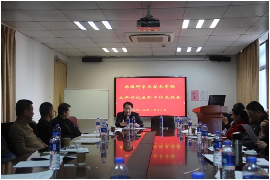 2019年1月11日下午,物理科学与技术学院在物理大楼407会议室召开2018年度支部书记抓党建工作现场述职考核评议大会,会议由院党委书记林奋强主持, 学院党委委员、全体教工党支部、学生党支部书记参加此次会议。